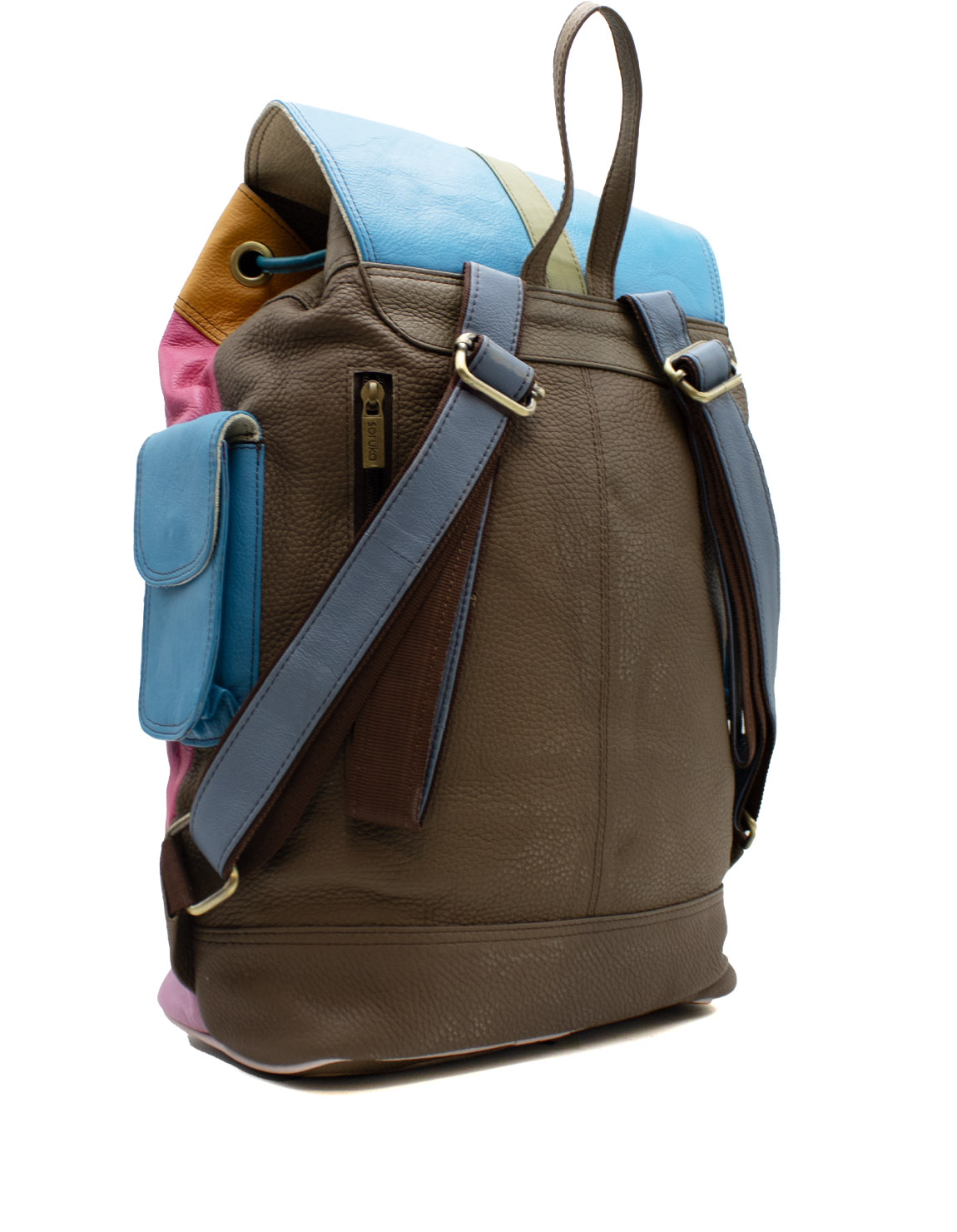 100% Upcycled Leather Backpack. Multicolor Eco friendly Handmade Backpack in shades of Blue and Pink.