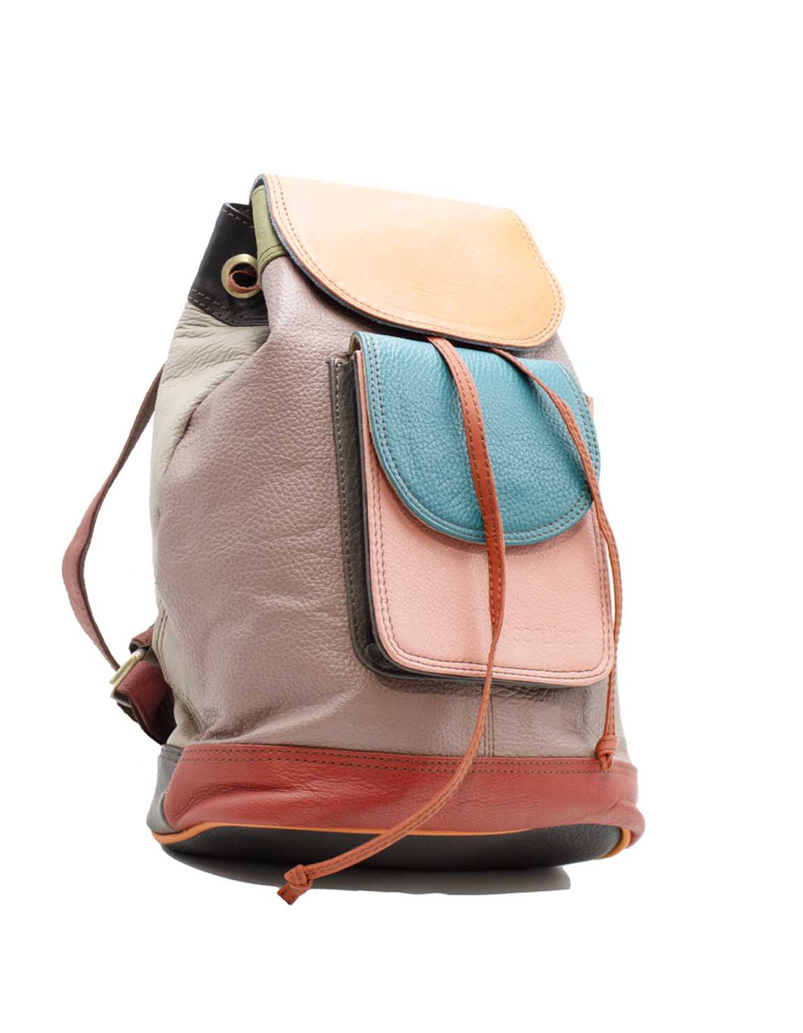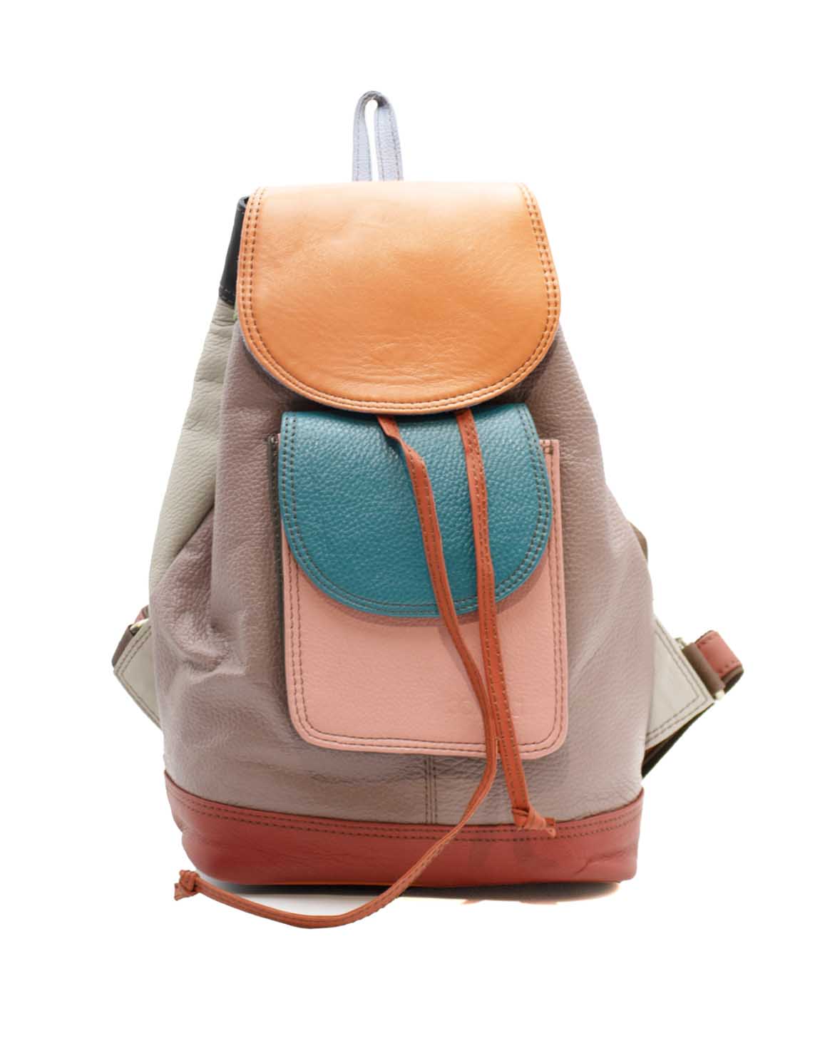 100% Upcycled Leather Backpack. Multicolor Eco-friendly Handmade Backpack in Shades of Pin k and Bright Colors.