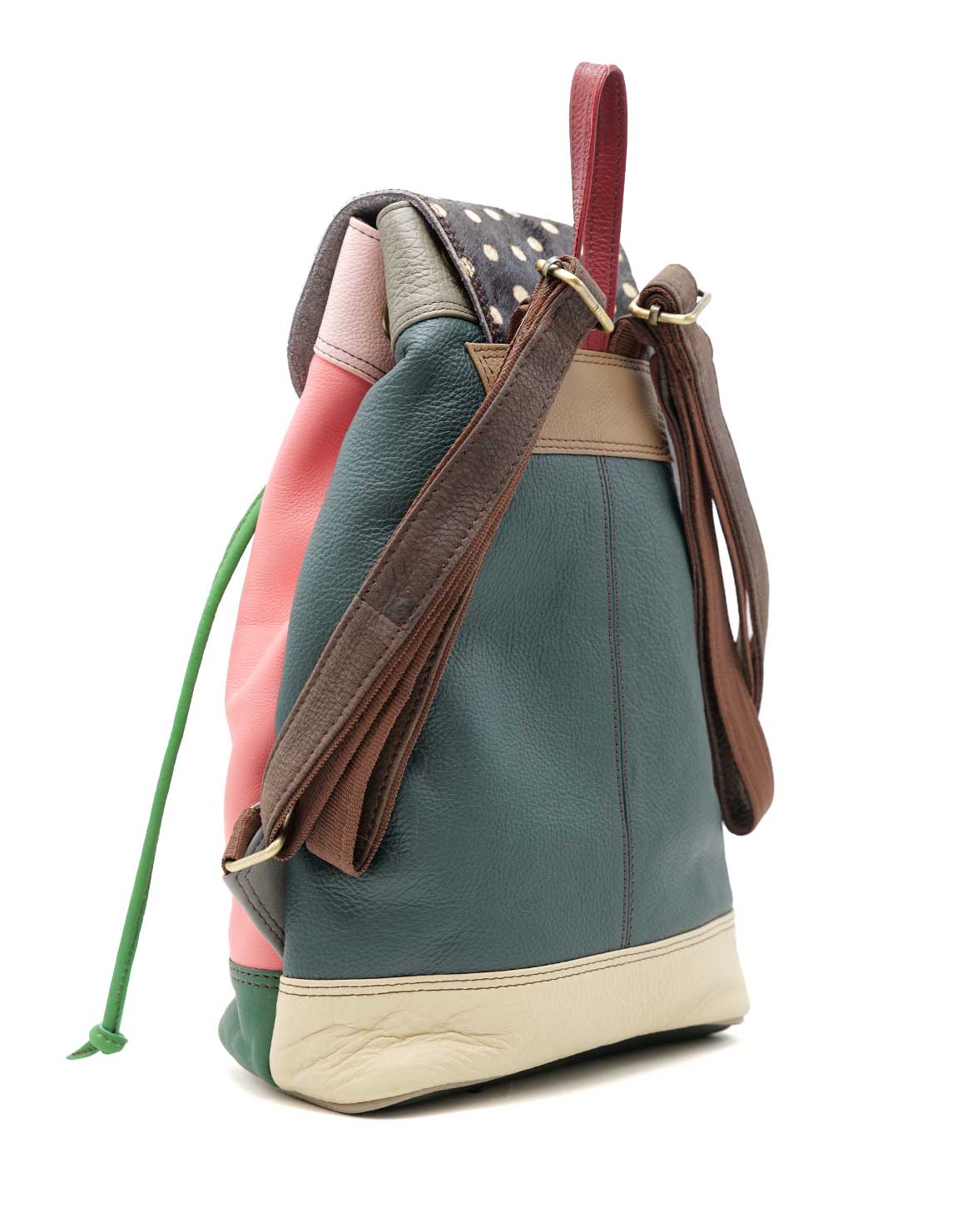 Motxilla petita de pell reciclada · Motxilla de dona · Bossa de dona feta a mà · Motxilla de viatge colorida