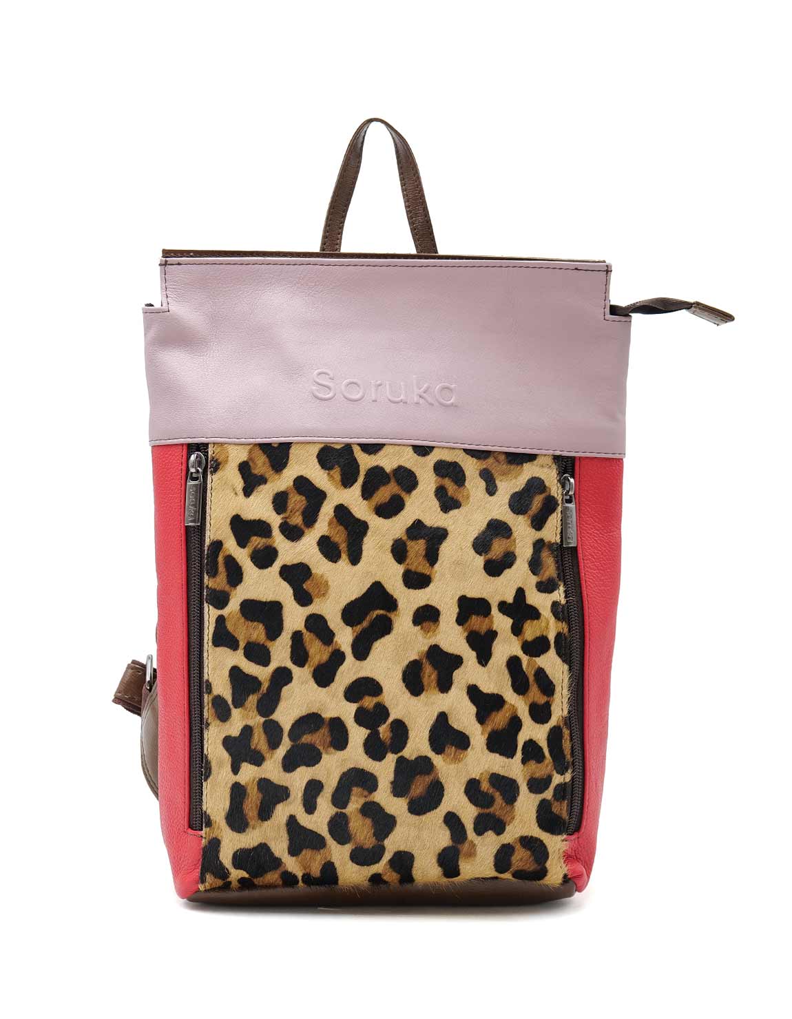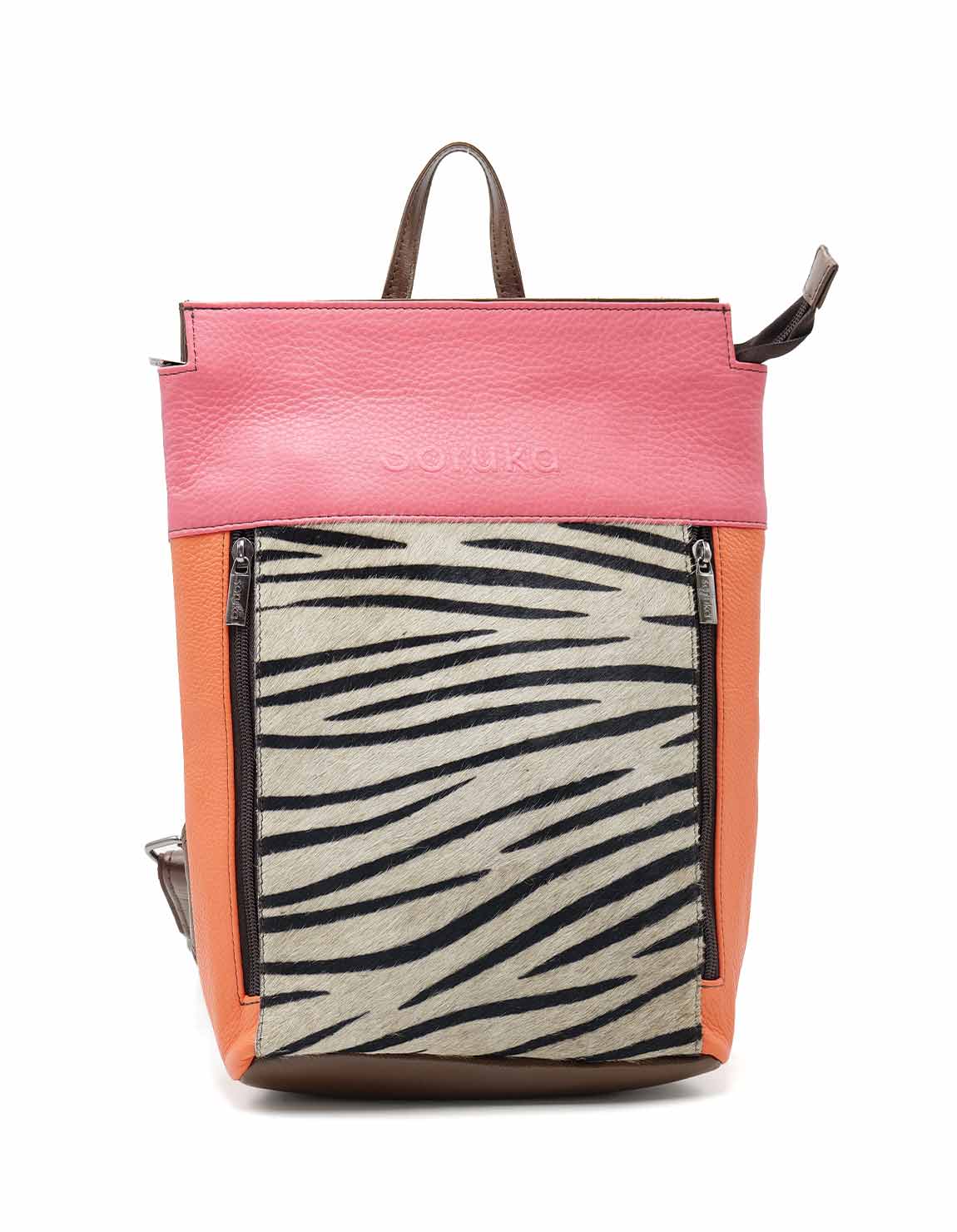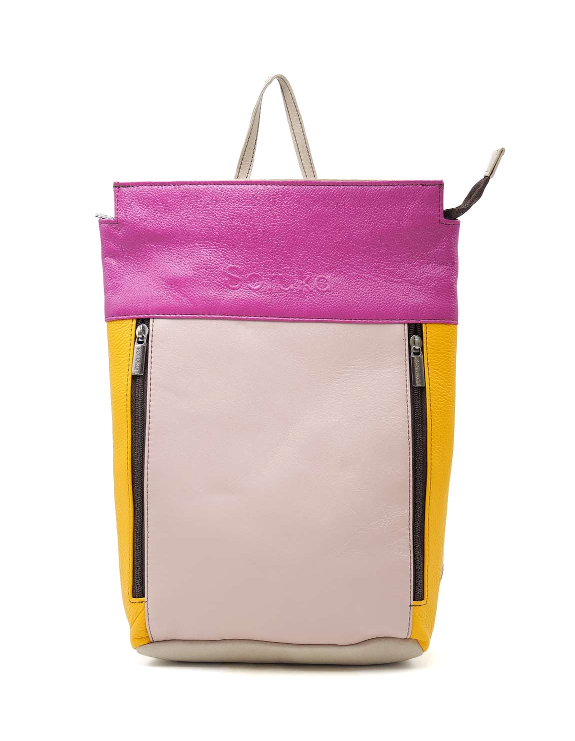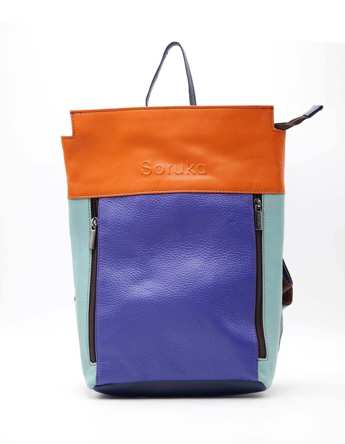 Rucksack aus recyceltem Leder · Handgefertigte Damenhandtasche · Bunter Rucksack · Geschenk für sie