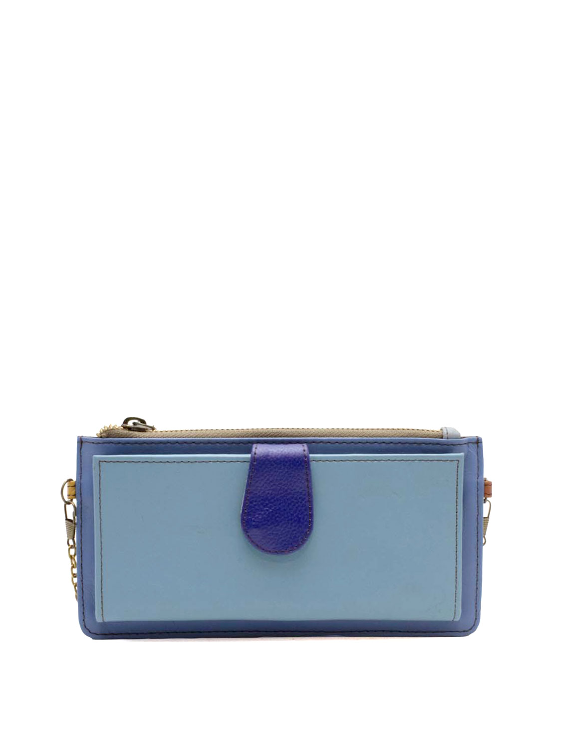 Clutch aus recyceltem Leder in Blautönen. Wunderschöne handgefertigte umweltfreundliche Geldbörse aus upcyceltem Leder.