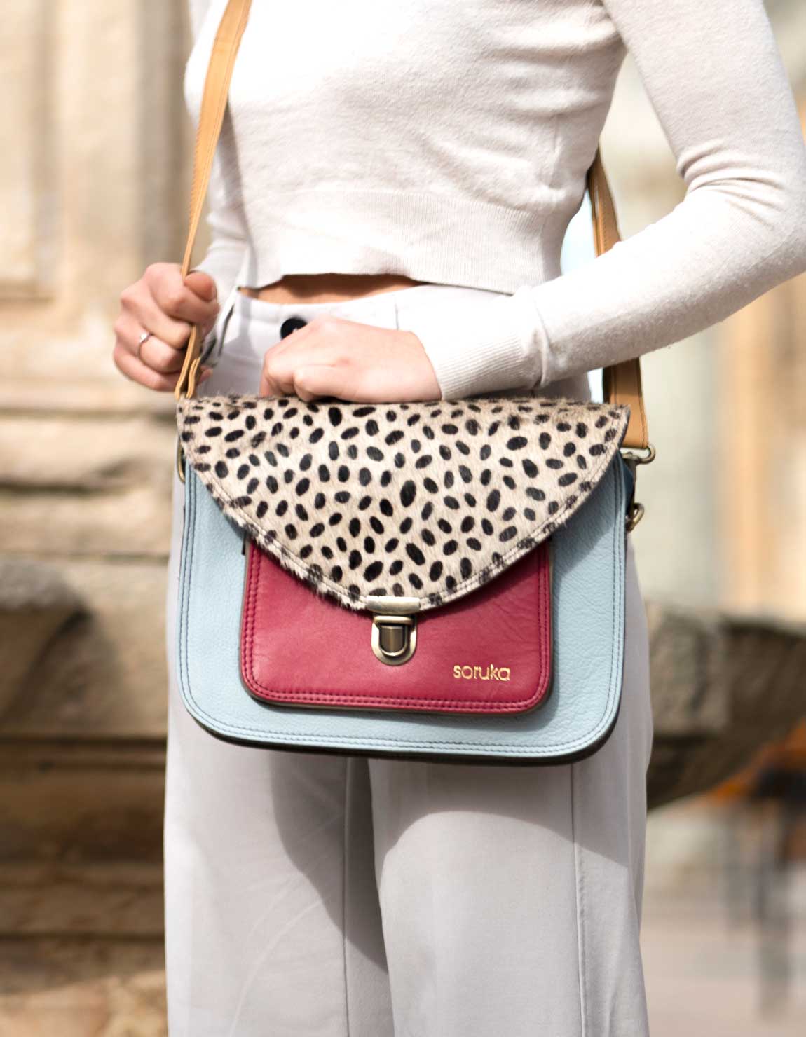 Bunte Ledertasche · Handtasche aus recyceltem Leder · Handgefertigte Damenhandtasche · Umhängetasche · Kleine Umhängetasche · Satteltasche · Umhängetasche