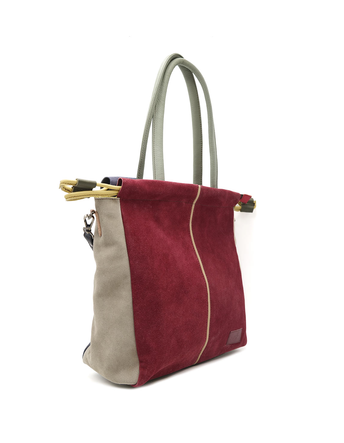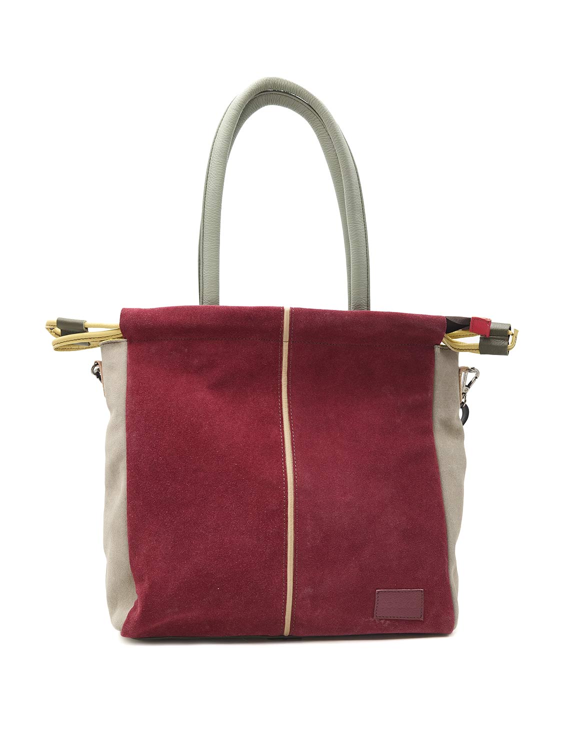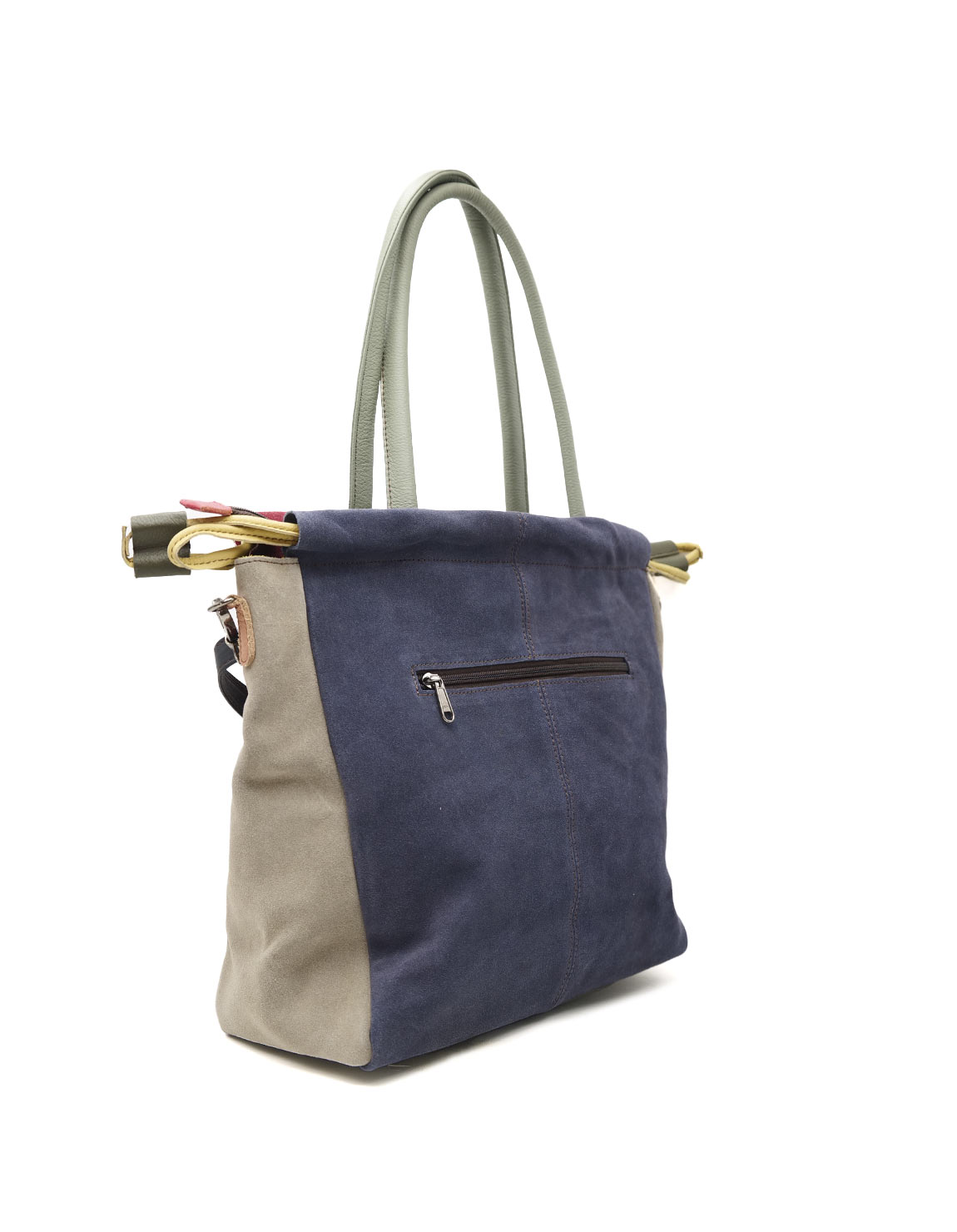 Damen-Schultertasche · Zweifarbiges recyceltes Leder · Handgefertigt · Zwei Tragegriffe und verstellbarer Schultergurt · Großes Fassungsvermögen für den täglichen Gebrauch