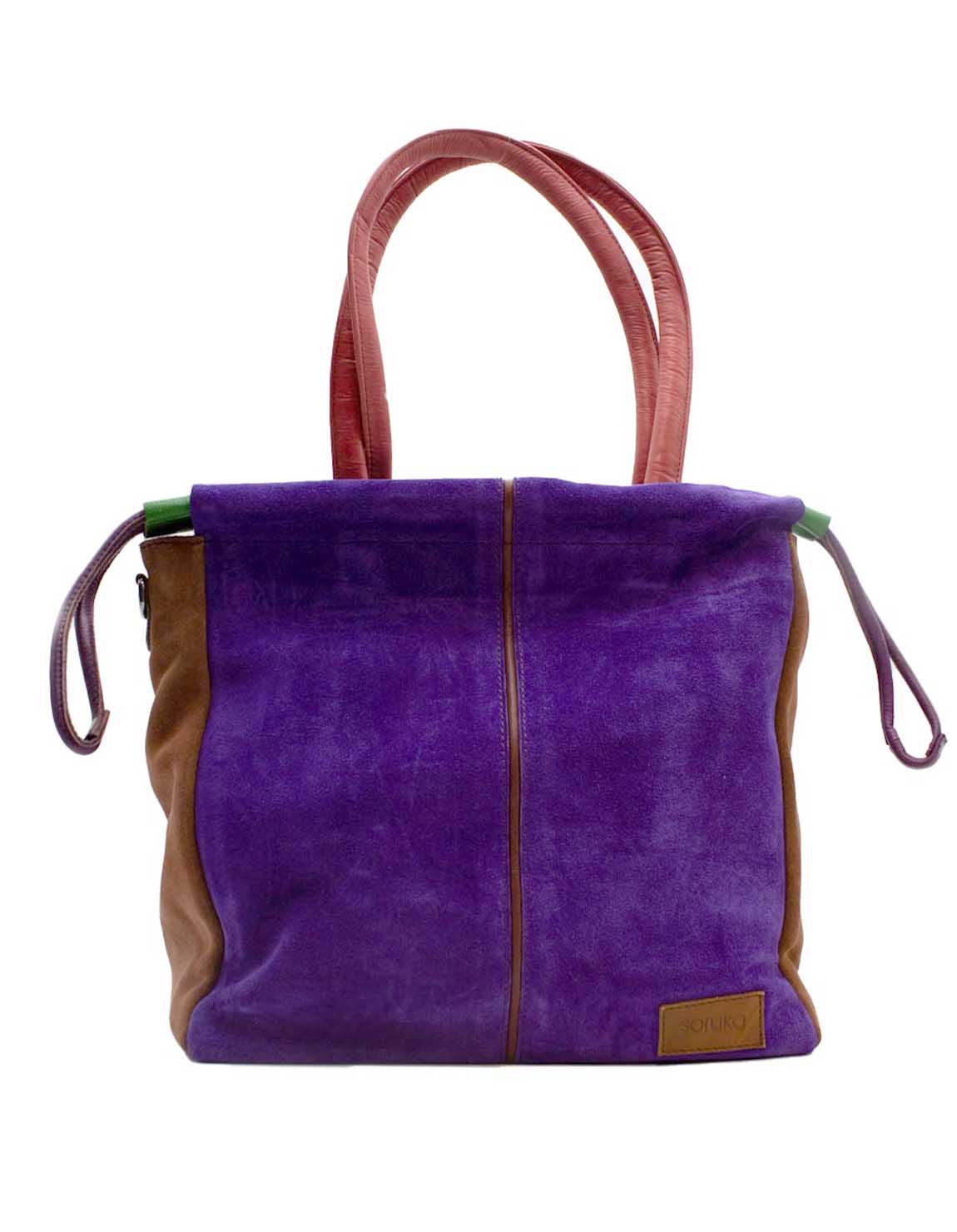 Damen-Schultertasche · Zweifarbiges recyceltes Leder · Handgefertigt · Zwei Tragegriffe und verstellbarer Schultergurt · Großes Fassungsvermögen für den täglichen Gebrauch