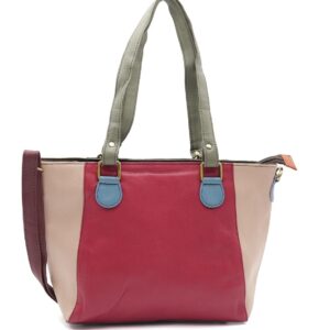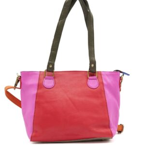 Wunderschöne Große Tote / Umhängetasche aus 100% recyceltem Leder. Umweltfreundliche handgefertigte Tasche in Grün und Rosa.