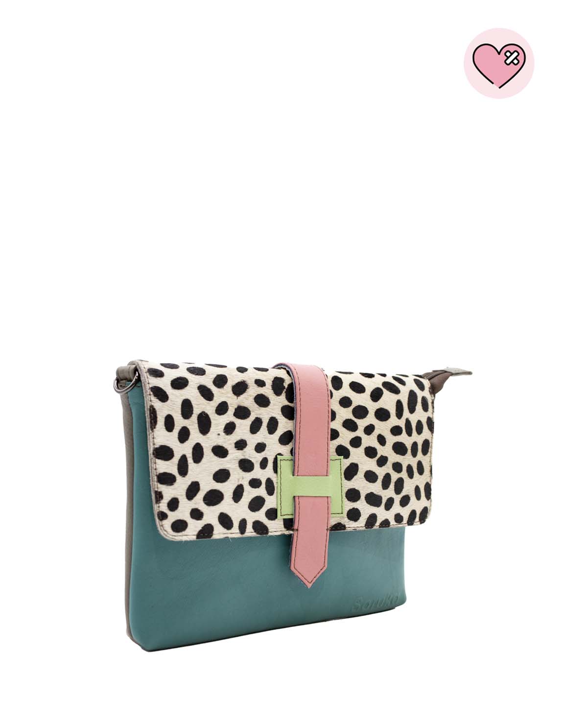 Bunte Umhängetasche · Accessoire aus recyceltem Leder · Handgefertigte Schultertasche · Lederaccessoire für Damen