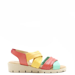 Damensandalen · 100 % recyceltes Leder · Bequemes Schuhwerk · Mehrfarbige Sandale mit mittelhohem Bund · Hergestellt in Spanien