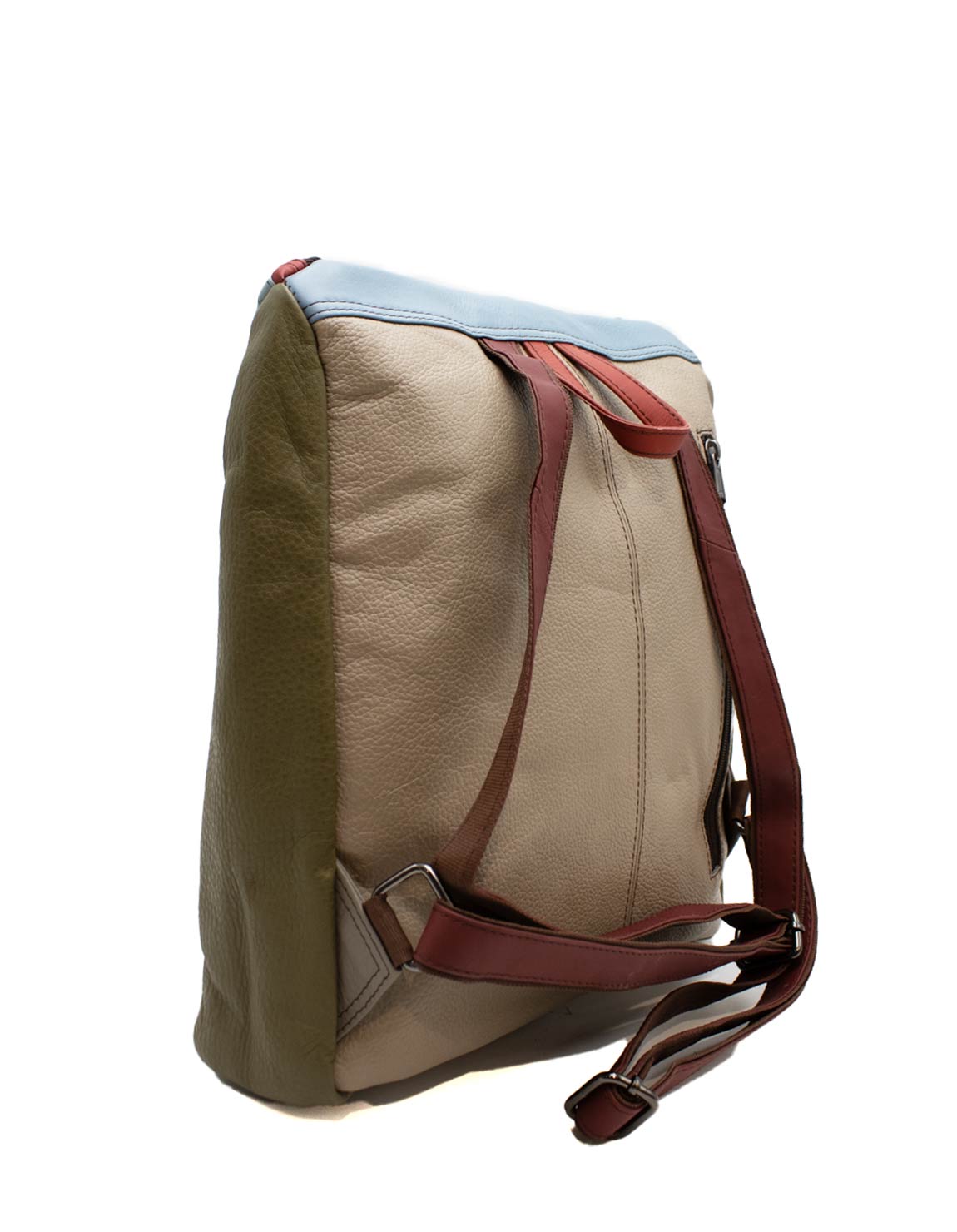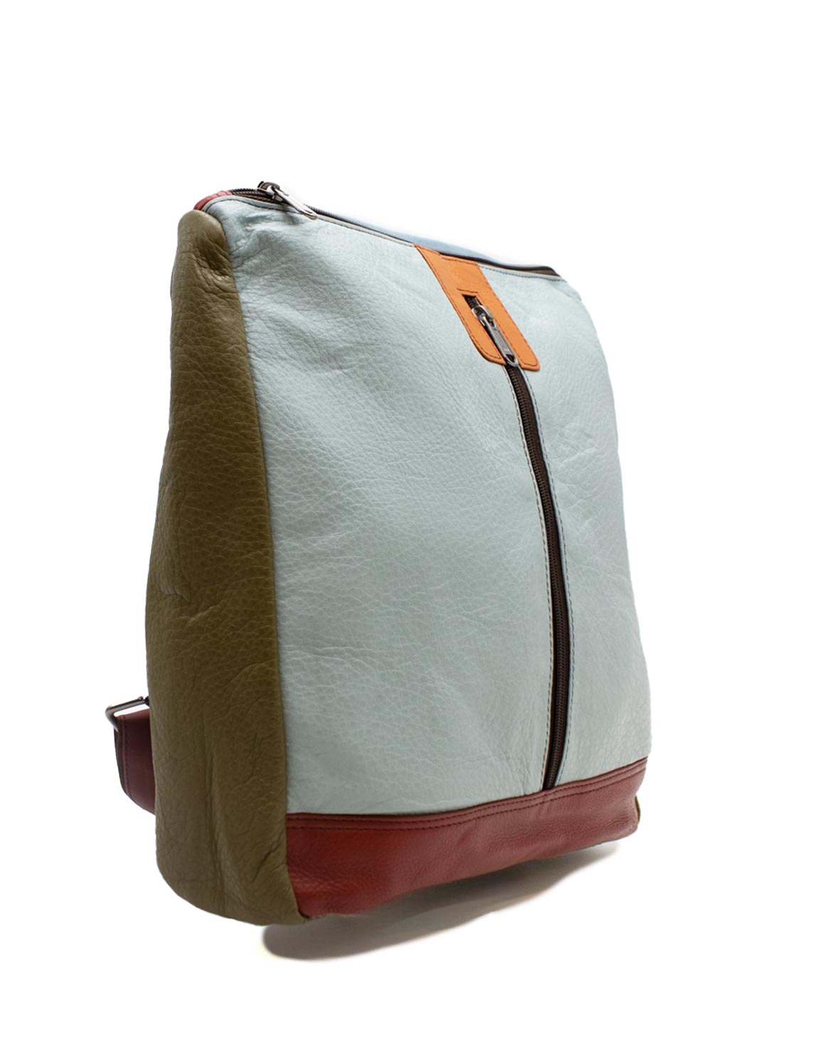 Mochila de cuero 100% reciclado en colores lisos. Preciosa mochila ecológica hecha a mano en tonos azules y rojos.