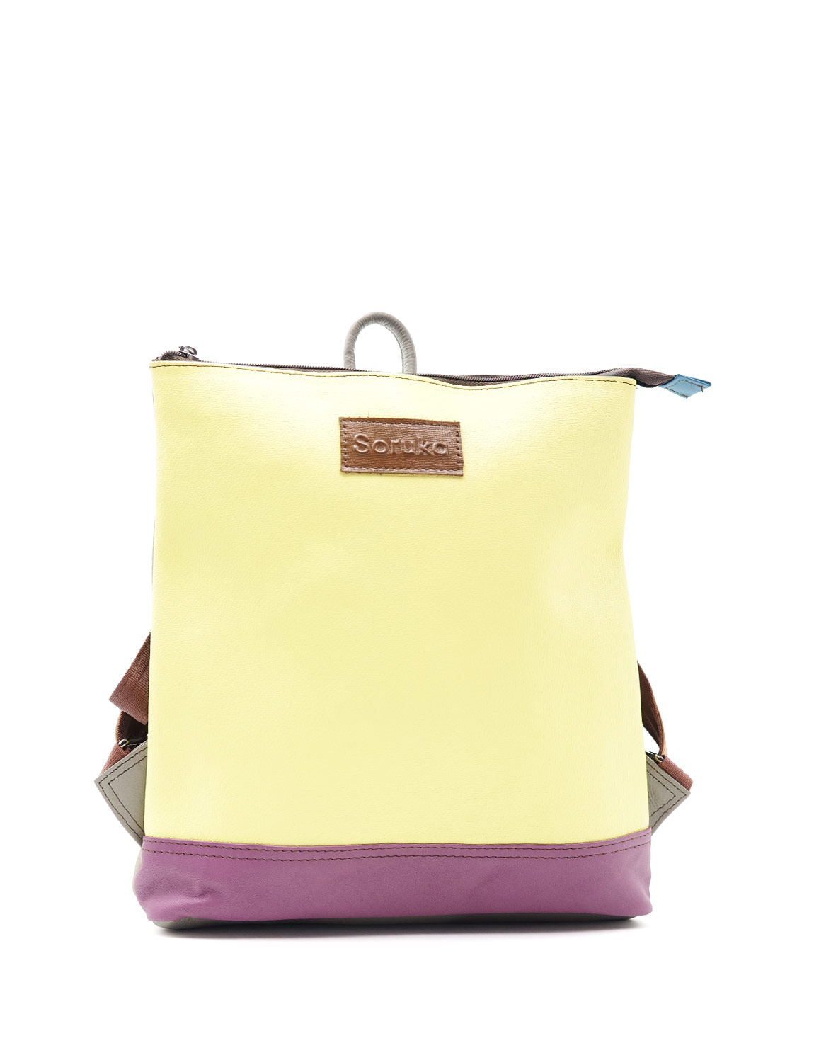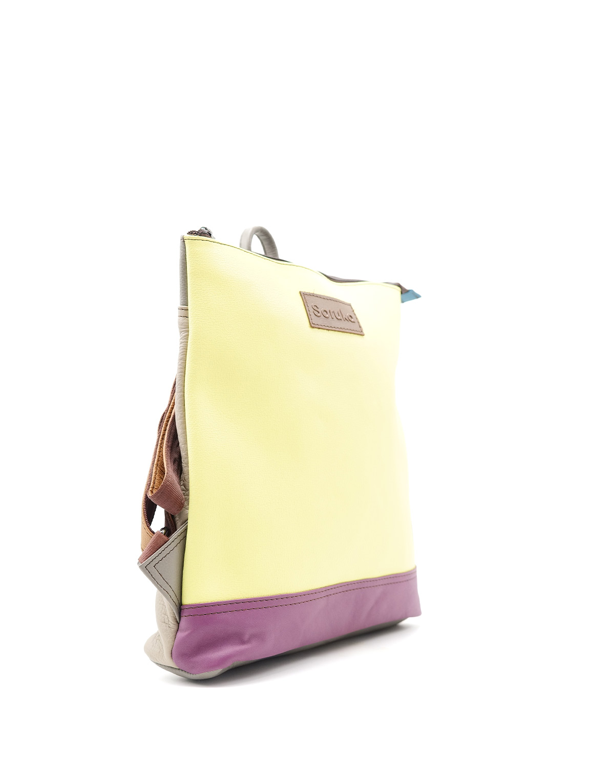 Ligera, sencilla y sostenible: esta mochila de cuero reciclado hecha a mano está diseñada para quienes aman el estilo minimalista con la máxima funcionalidad. Ya sea para el trabajo, la escuela o los viajes, esta mochila lisa en color morado y amarillo ofrece un diseño atemporal y una forma ecológica de llevar tus objetos esenciales.