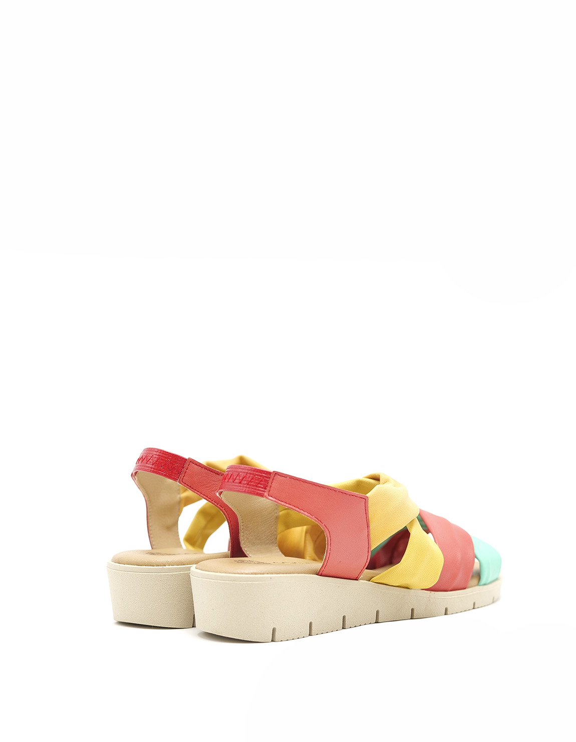 Sandalias de Mujer · 100% Piel Reciclada · Calzado Confort · Sandalia Multicolor de Tacón Medio · Fabricadas en España