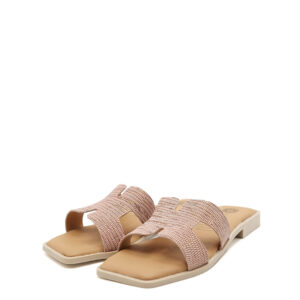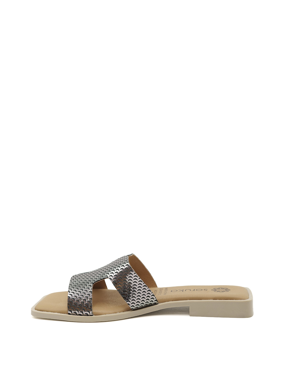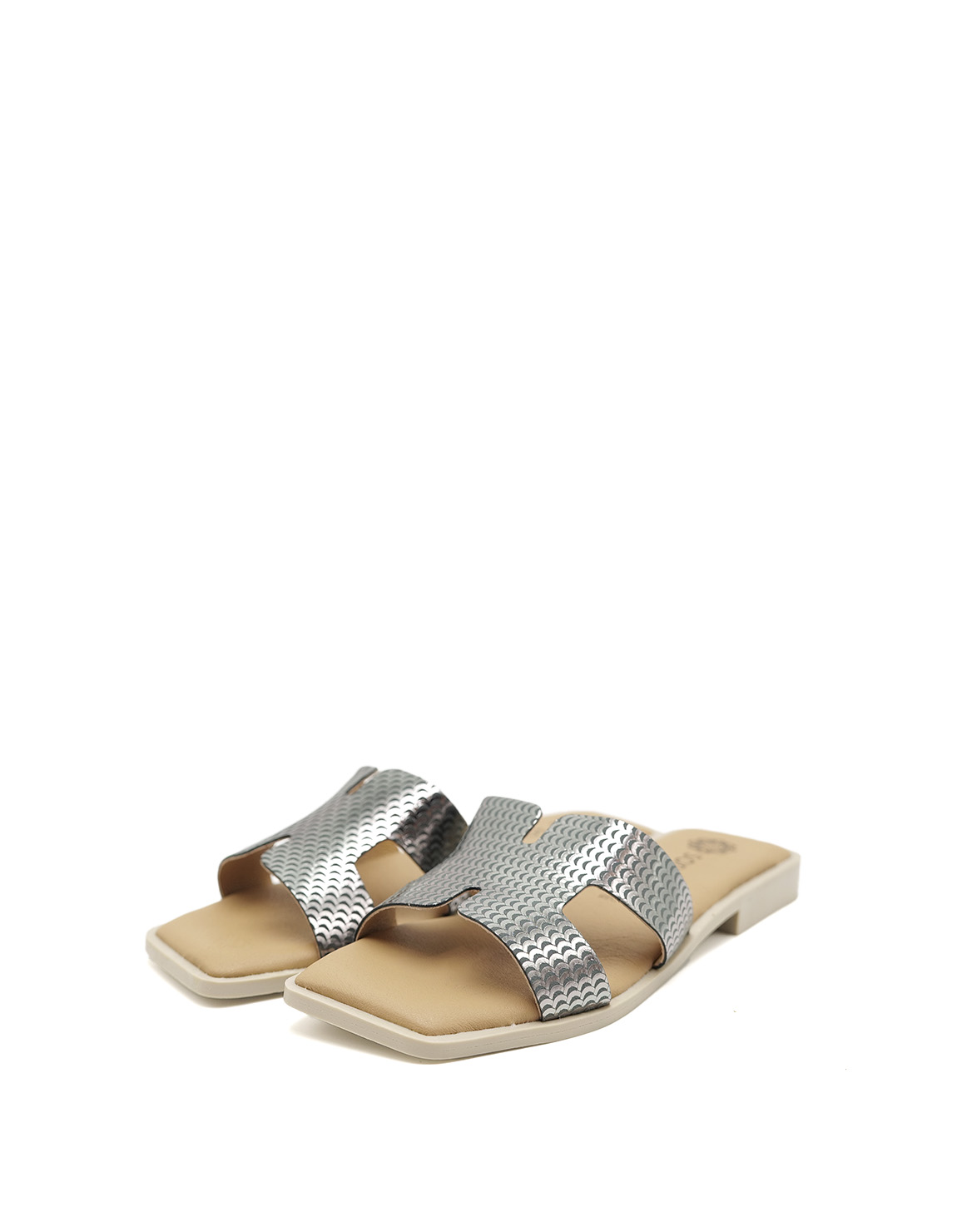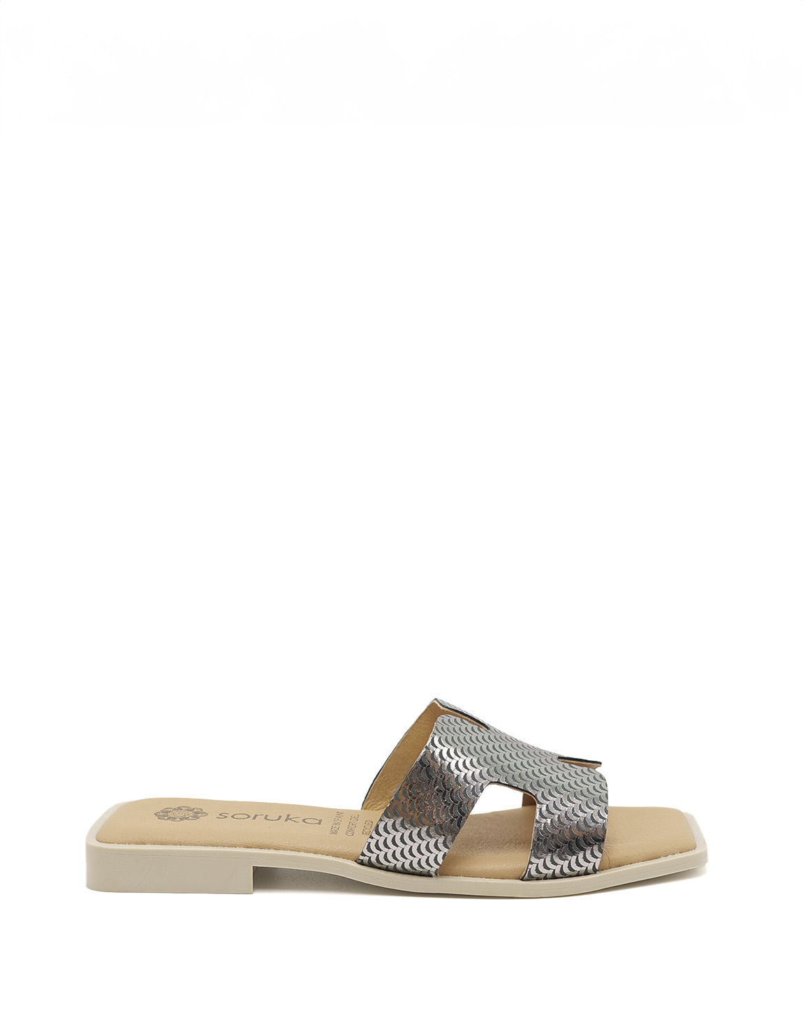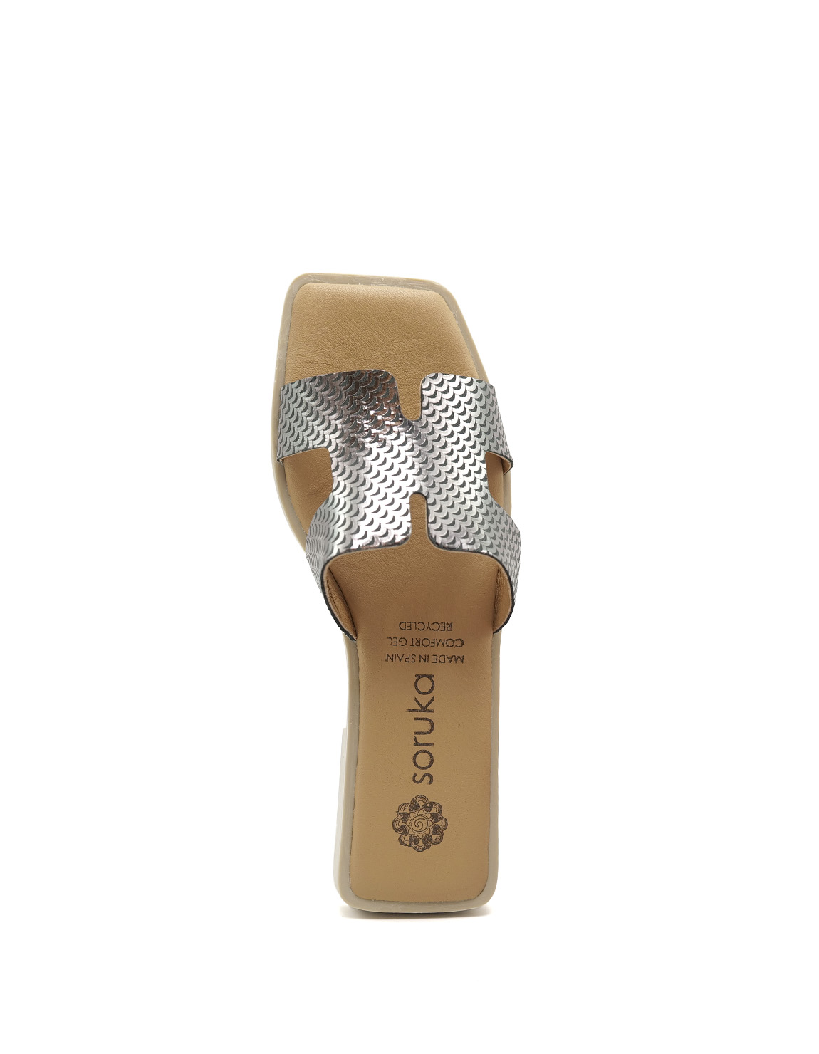 Sandalias de mujer · 100% piel reciclado · Calzado cómodo · Sandalia plana lisa hecha con cuero metalizado · Fabricadas en España
