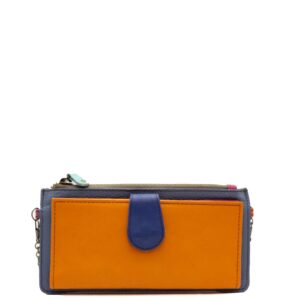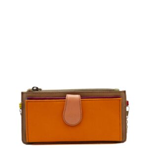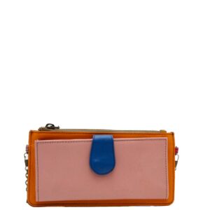 Cartera de cuero reciclado en tonos rojos y naranjas. Hermosa billetera ecológica hecha a mano con cuero reutilizado.