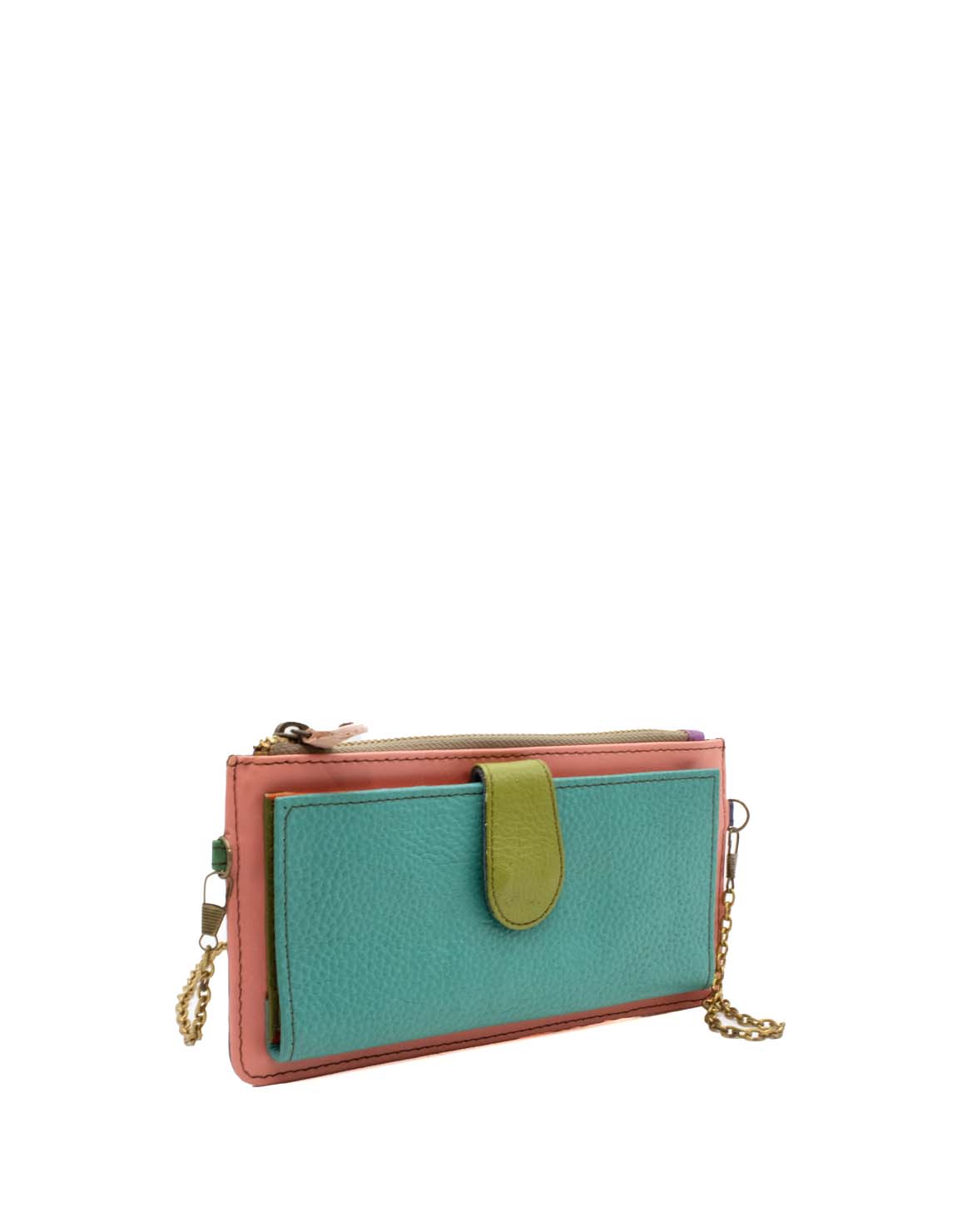 Cartera de cuero reciclado en tonos rosas y blaus. Hermosa billetera ecológica hecha a mano con cuero reutilizado.