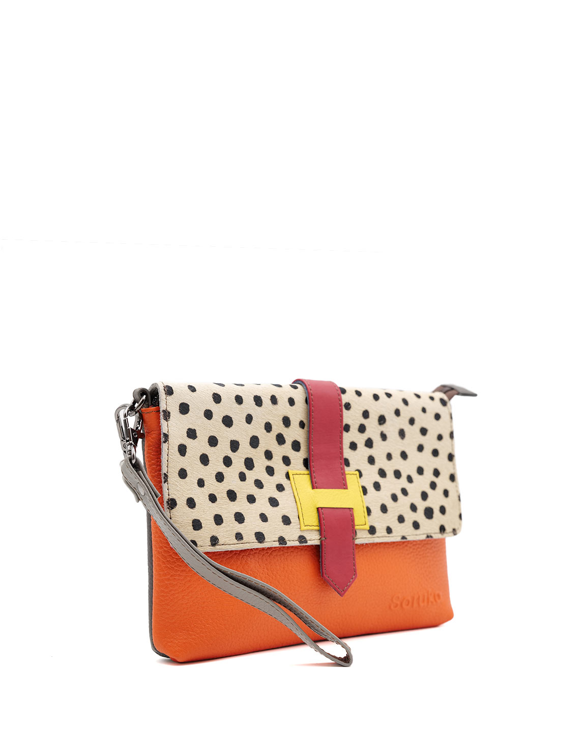 Bolso bandolera colorido · Complemento de cuero reciclado · Bolso con correa hecho a mano · Complemento de cuero para mujer