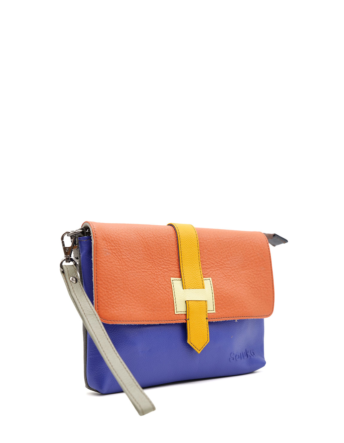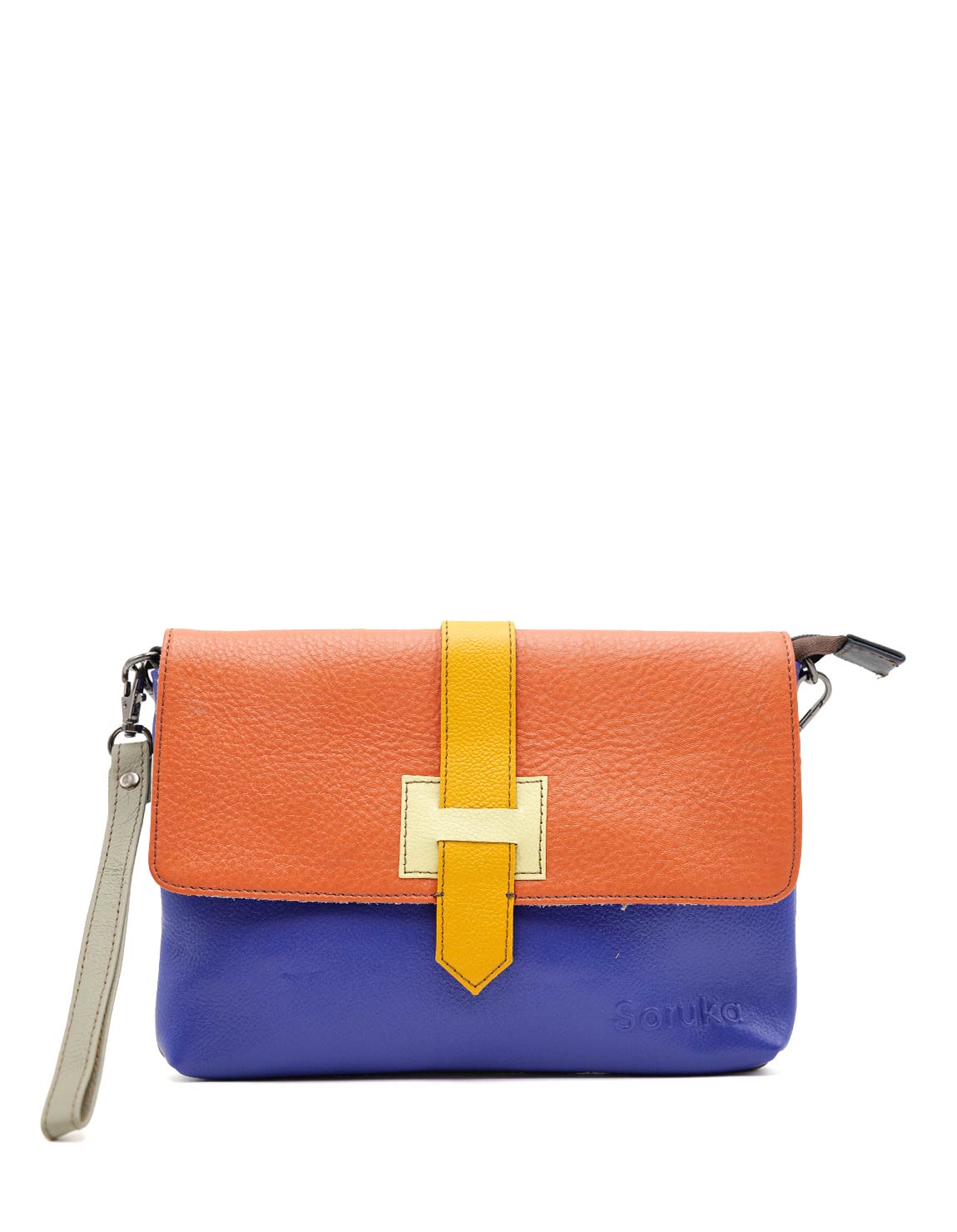 Bolso bandolera colorido · Complemento de cuero reciclado · Bolso con correa hecho a mano · Complemento de cuero para mujer