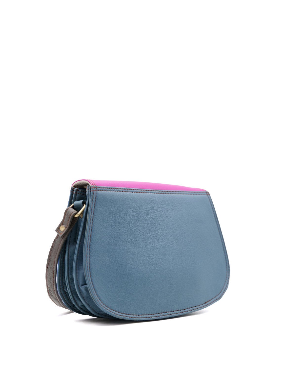 Bolso de cuero 100% reciclado en tonos de color rojo, morado y azul. Bolso de tamaño medio, bandolera, ecológico y hecho a mano.