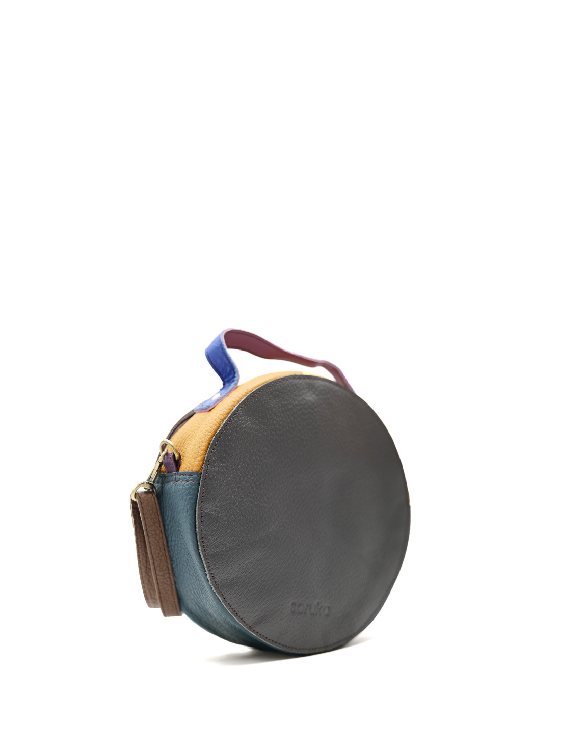 Bolso de cuero redondo – Bolso crossbody de colores – Bolso de cuero reciclado – Bolso de mujer hecho a mano – Bolso crossbody pequeño – Bolso montura bonito – Bolso petite