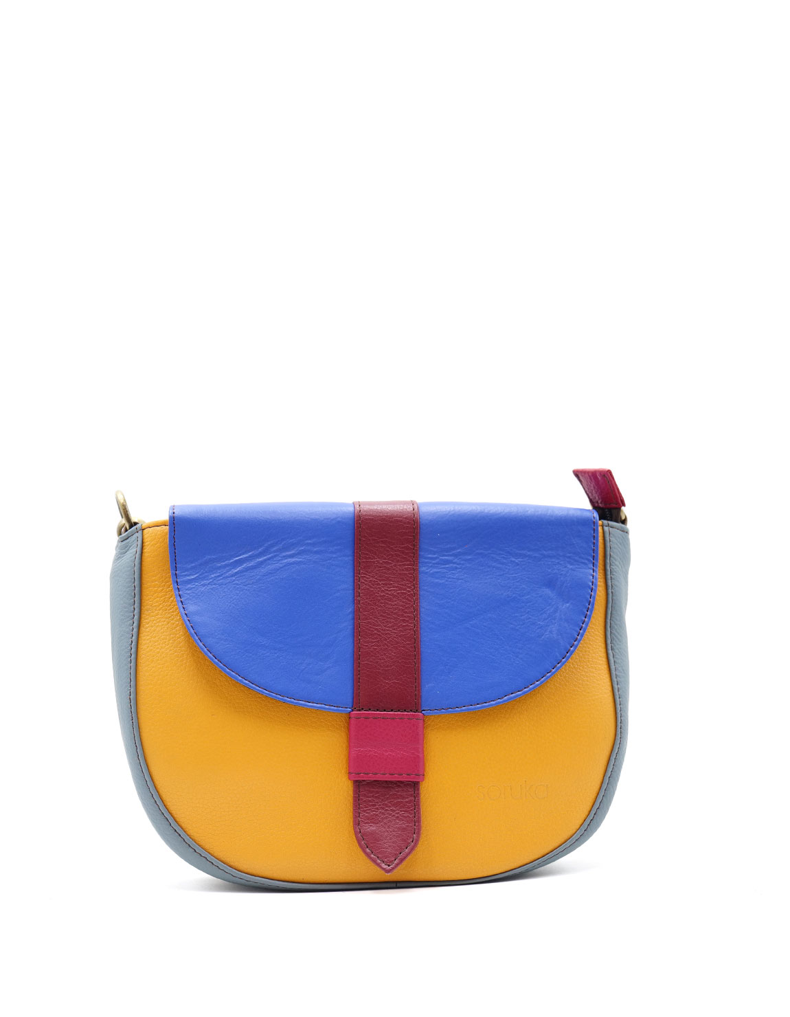 Bolso colorido de cuero reciclado · Bandolera tamaño mediano · Bolso de hombro hecho a mano · Bolso en forma de silla de montar