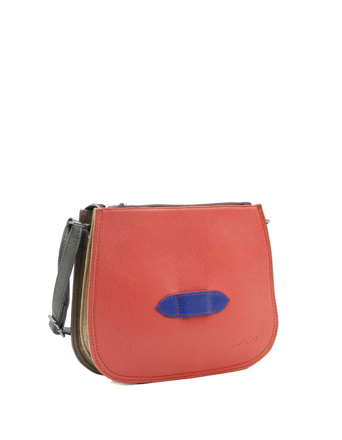 Este bolso mediano de forma tipo saddle incluye dos amplios compartimentos principales, que se cierran con dos cremalleras, una a cada lado de la solapa. Es el tamaño perfecto para guardar todos tus imprescindibles. Incluye además un bolsillo extra con cremallera en uno de los compartimentos principales. El bolso también viene con una correa ajustable para llevarlo al hombro o cruzado.