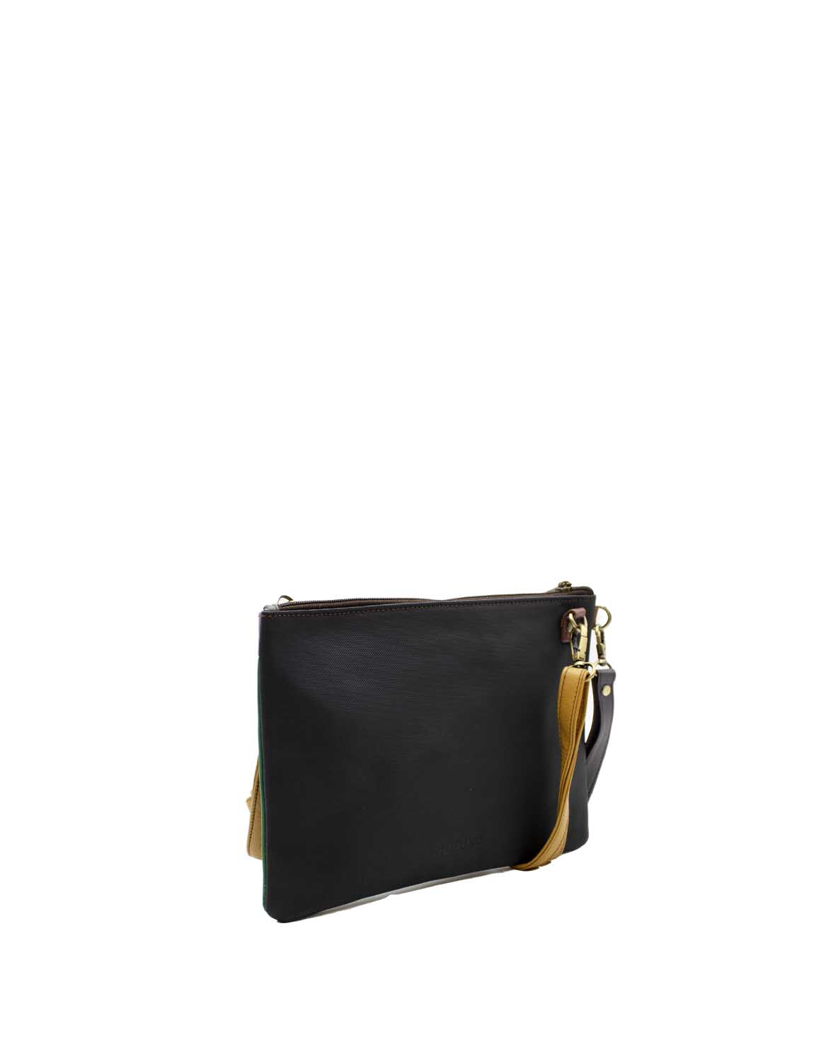 Bolso de mano elaborado 100% piel reciclada · Tamaño mediano con triple cremallera · Asa ajustable y extraíble · Hecho a mano.