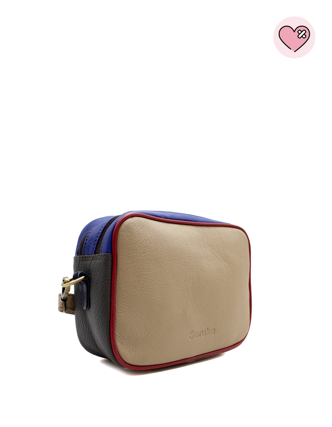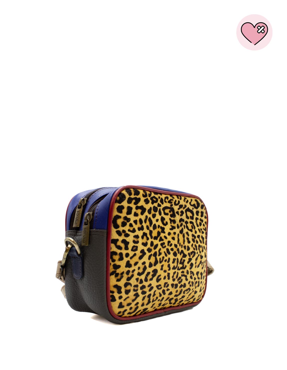 Bolso Bandolera de Cuero Reciclado · Bolso Estampado Hecho a Mano · Bolso con Cremallera · Moda Ecológica · Bolso Tipo Cámara · Bolso de Tamaño Mediano