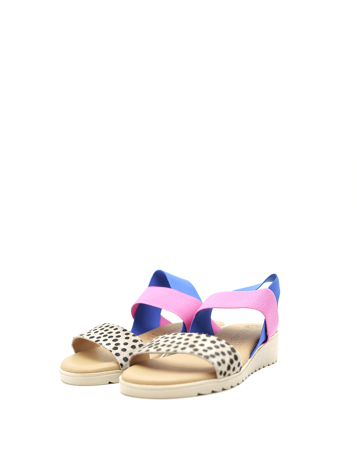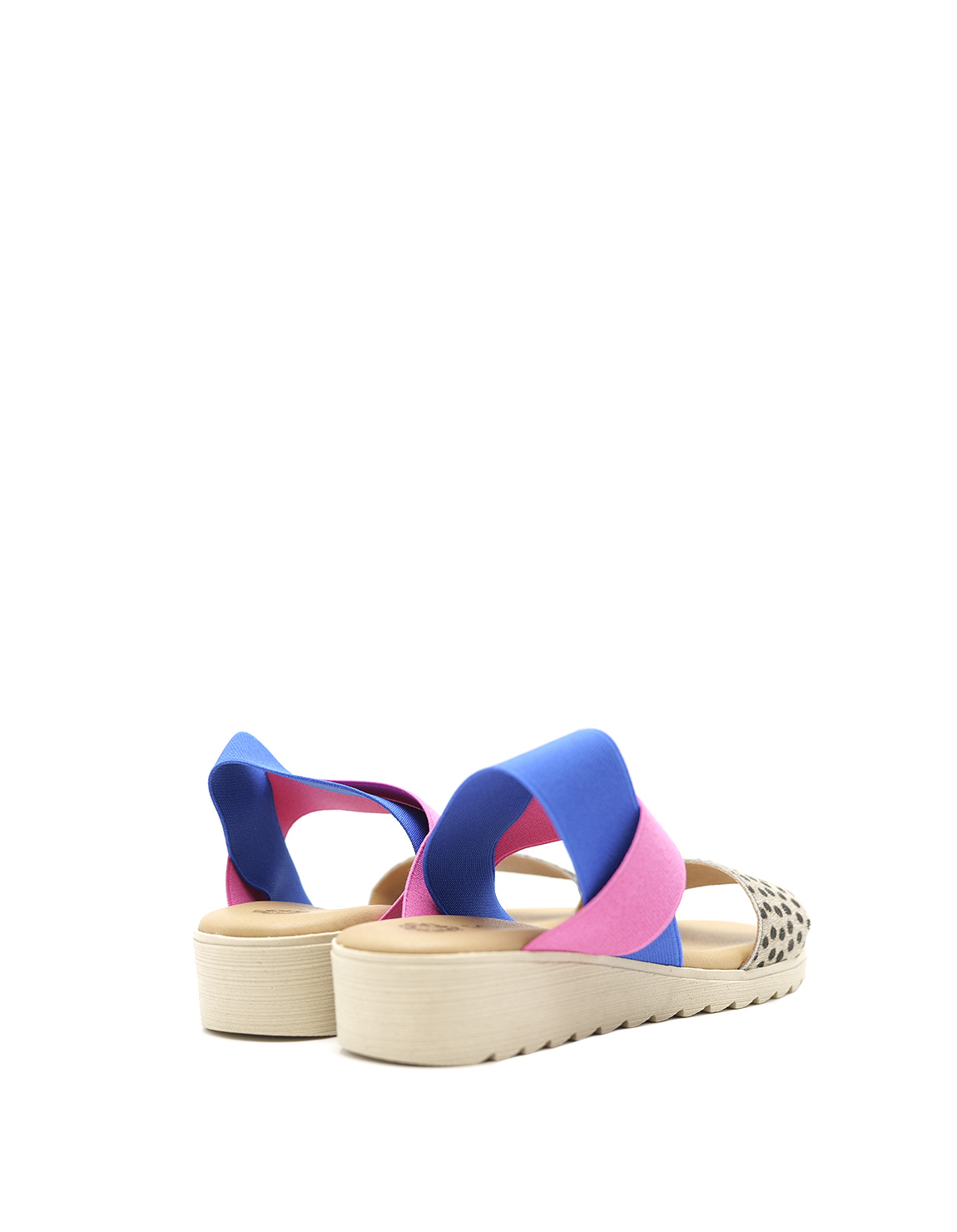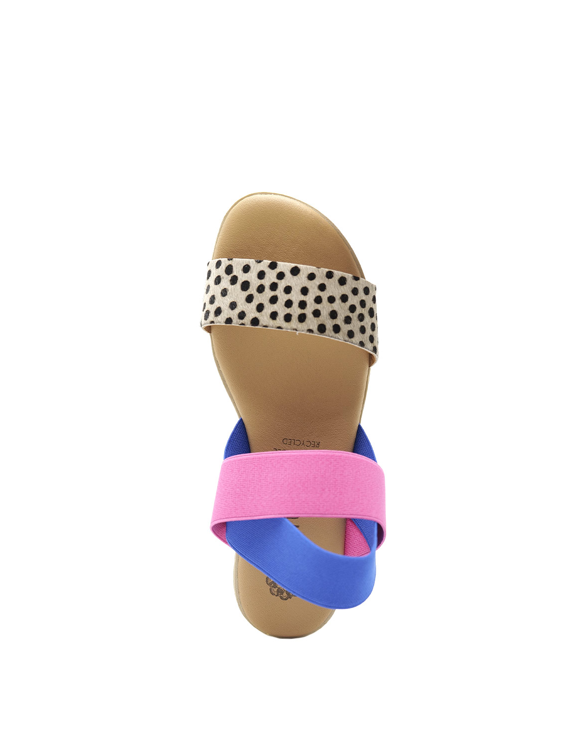 Sandales pour femmes · 100 % cuir recyclé · Chaussures confortables · Sandale multicolore taille moyenne avec imprimé animal · Fabriquées en Espagne