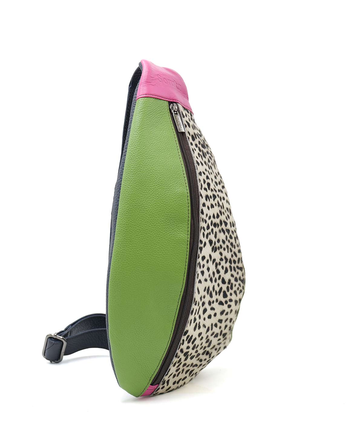 Sac en bandoulière en cuir recyclé pour femmes · Portefeuille fait à la main · Sac-à-dos moyen
