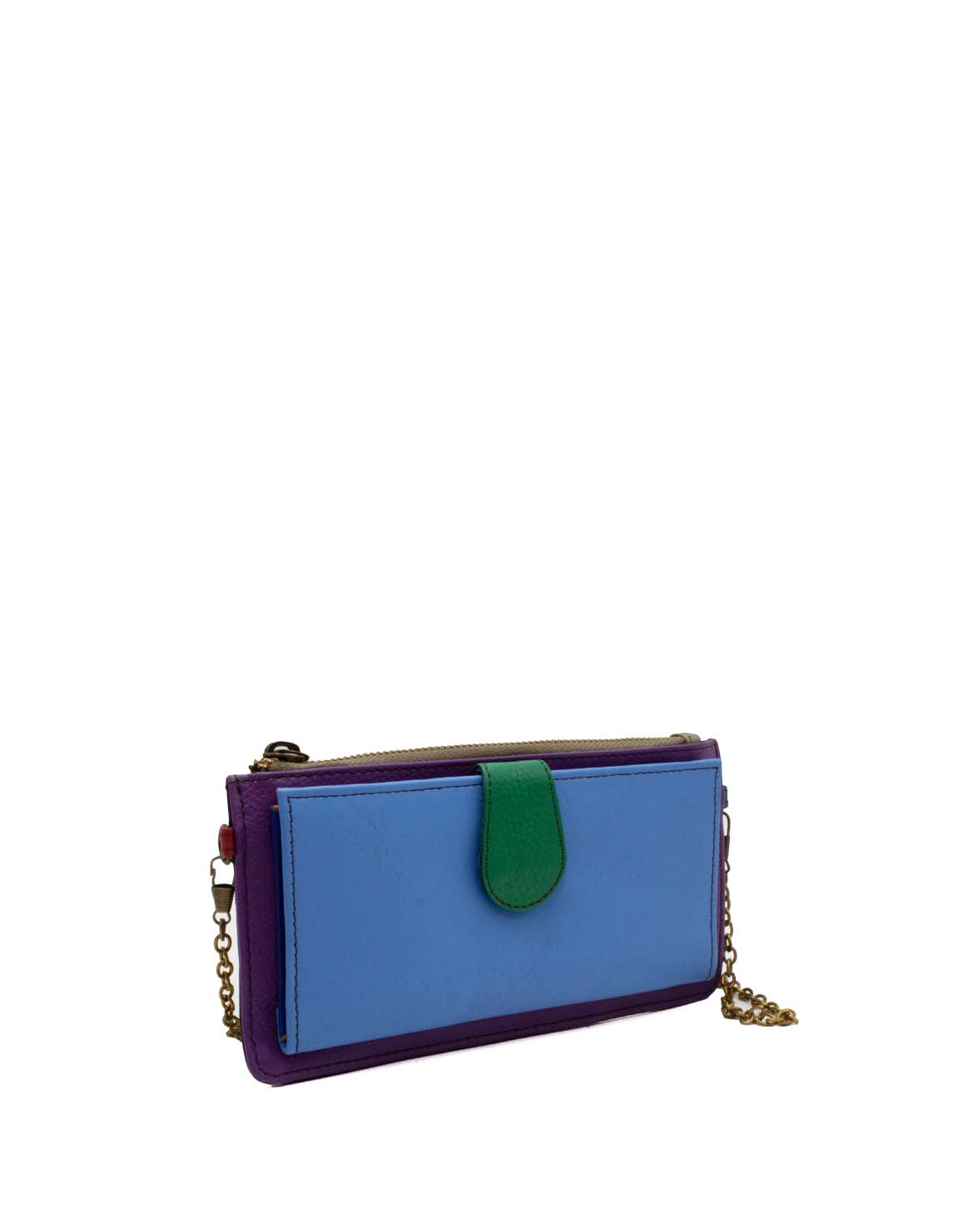 Pochette en cuir recyclé dans des tons de bleu et de violet. Magnifique portefeuille écologique fait main en cuir upcyclé.