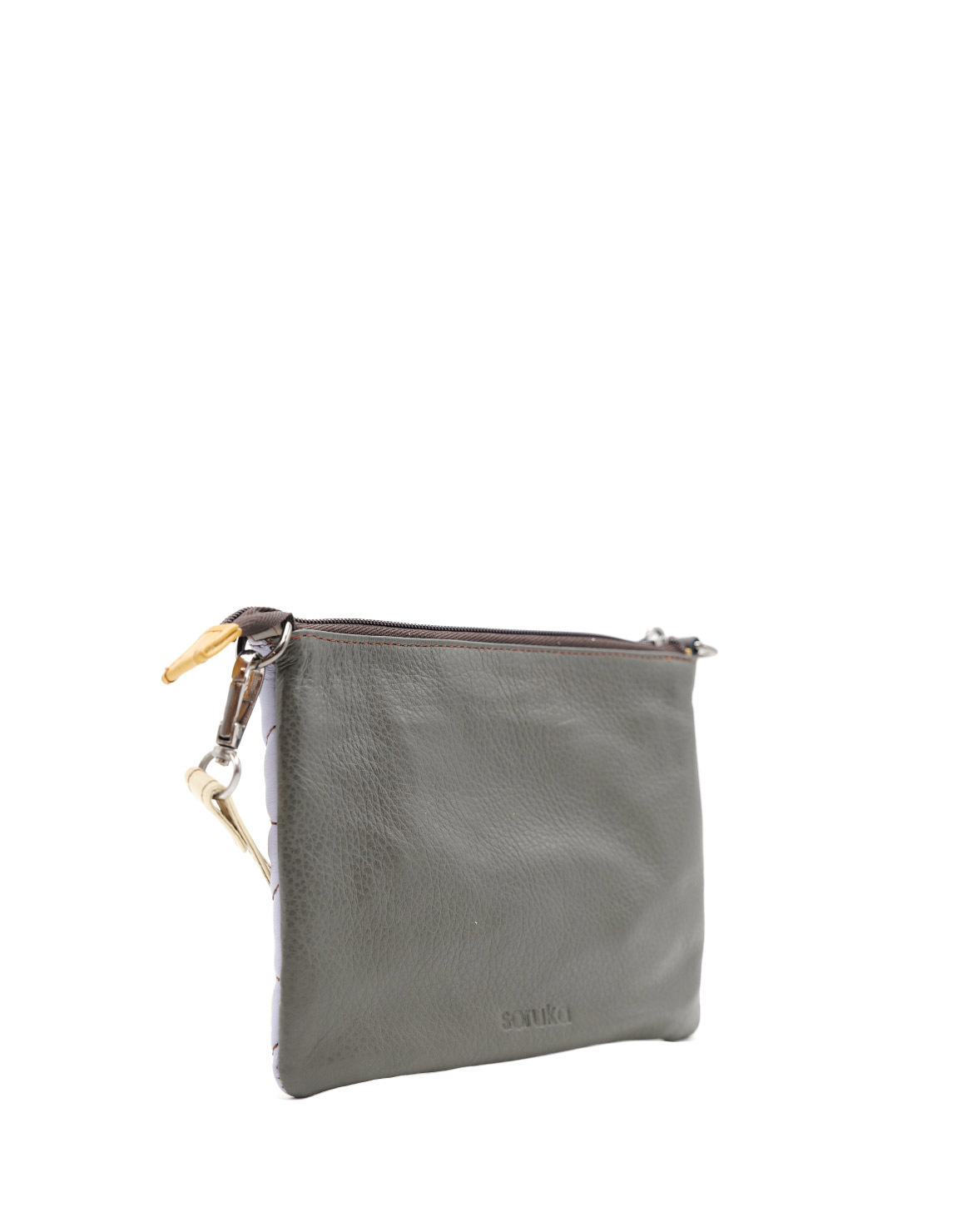Magnifique mini sac 100 % cuir recyclé. Sac artisanal et écologique dans des tons vert.