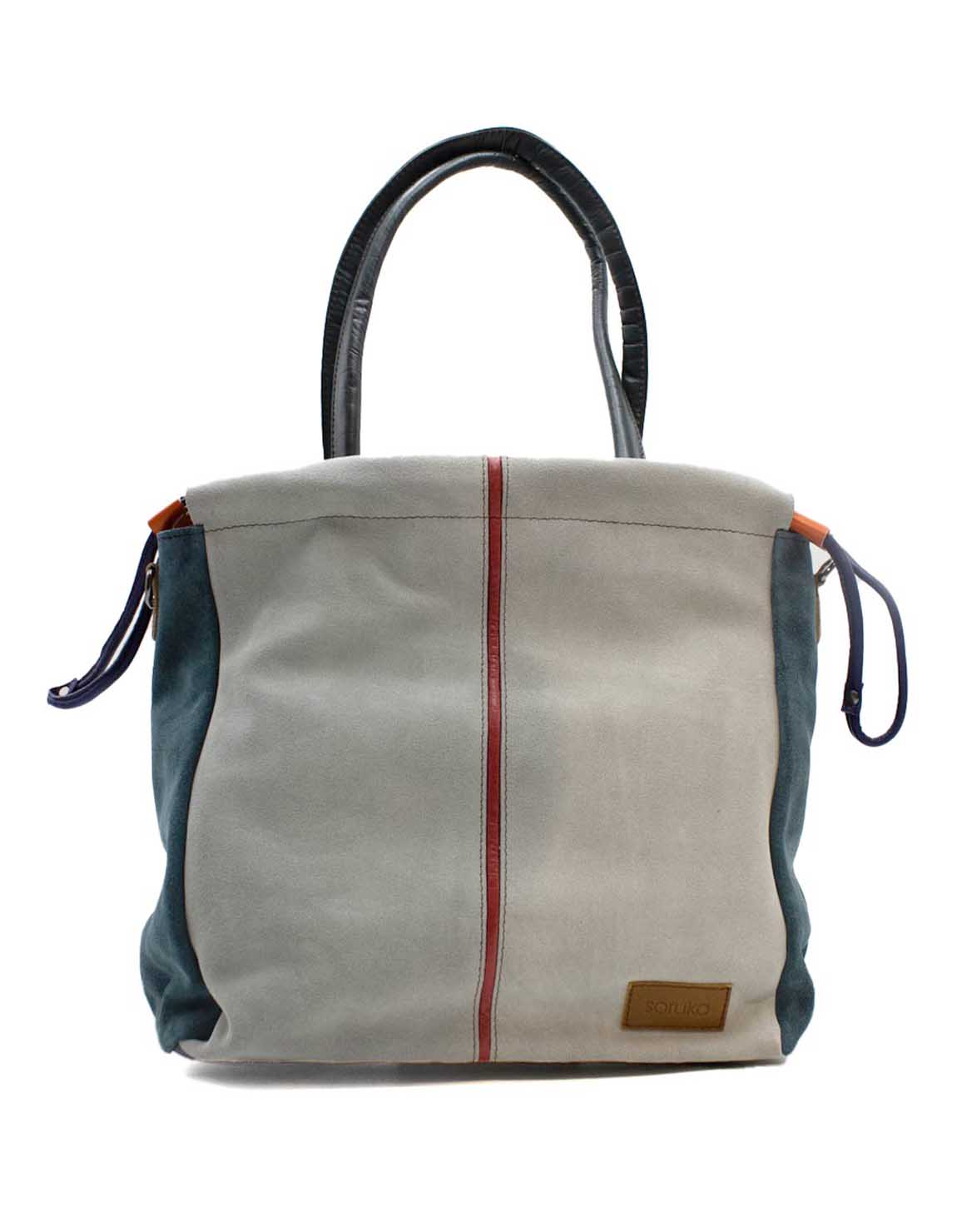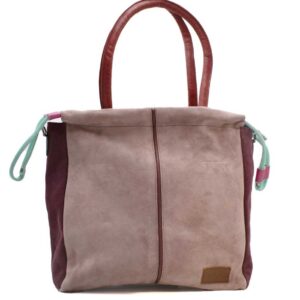 Sac bandoulière femme · Cuir recyclé bicolore · Fait main · Double anse et bandoulière ajustable · Grande capacité pour un usage quotidien