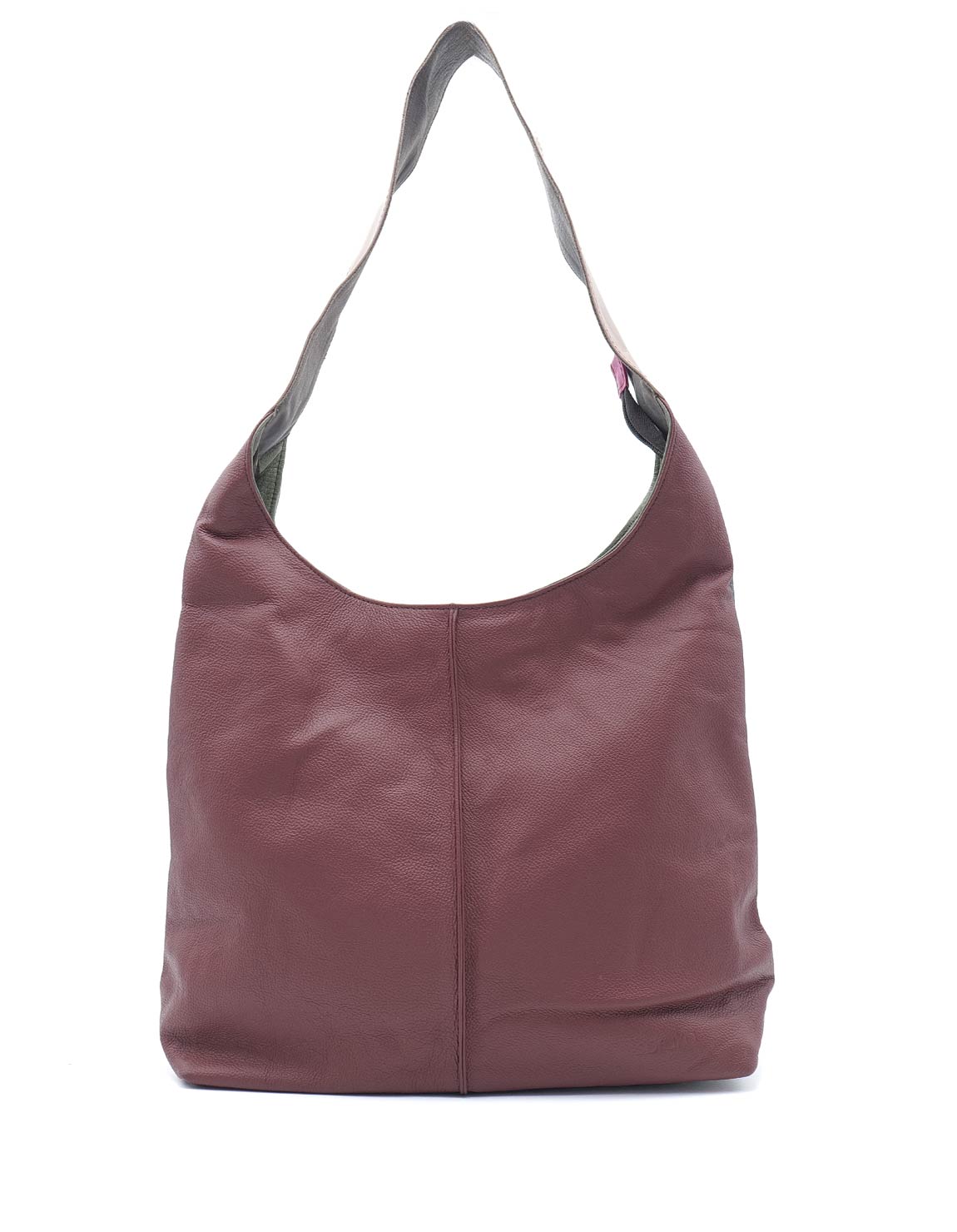 Sac à bandoulière en cuir 100% recyclé. Portez-le des deux côtés : un côté dans les tons rouge et l’autre dans les tons de gris. Magnifique sac fait main et respectueux de l’environnement.