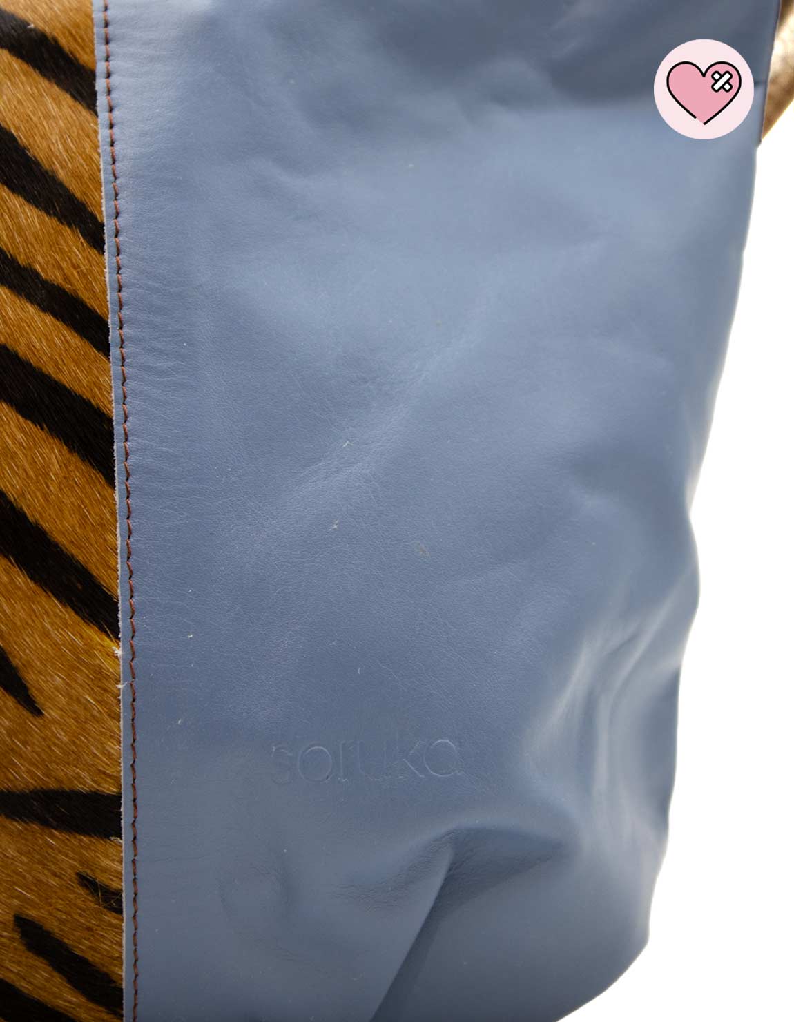 Étant donné que tous nos sacs sont fabriqués à partir de chutes de cuir recyclé, il peut y avoir des variations de couleur sur les plis, le dos et à l’intérieur de la doublure de nos sacs.