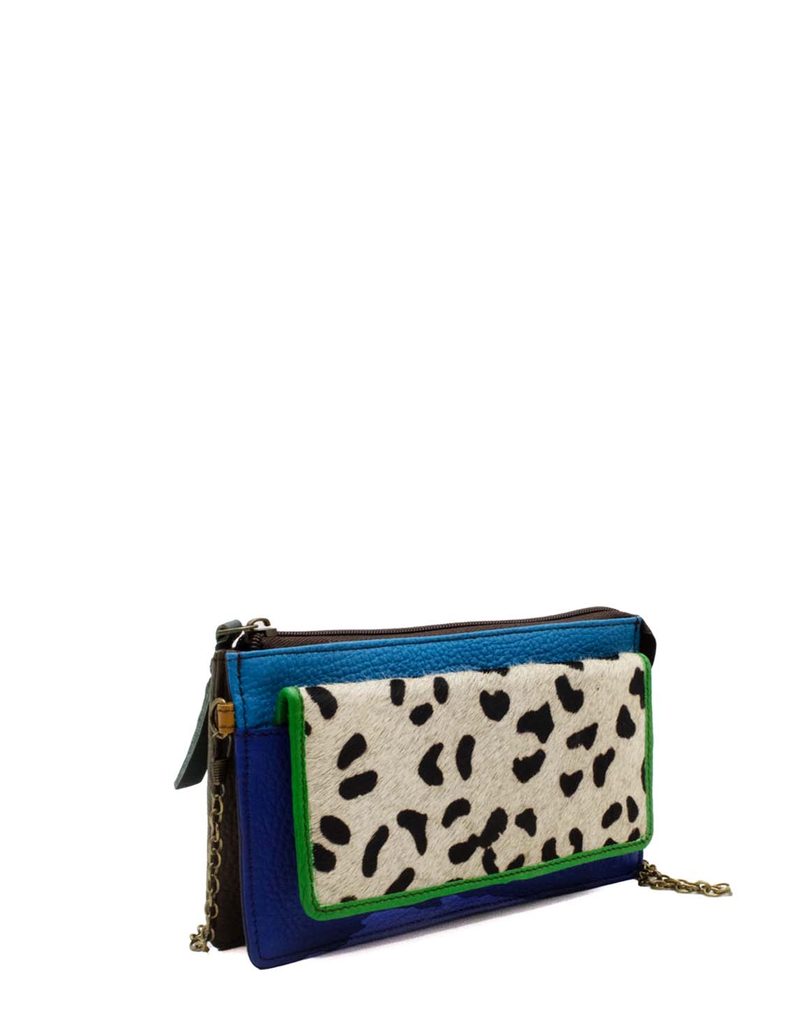 Recycled Leather Clutch with animal print and Shades of Blue. Beautiful Handcrafted Eco-Friendly Wallet made with Upcycled Leather.