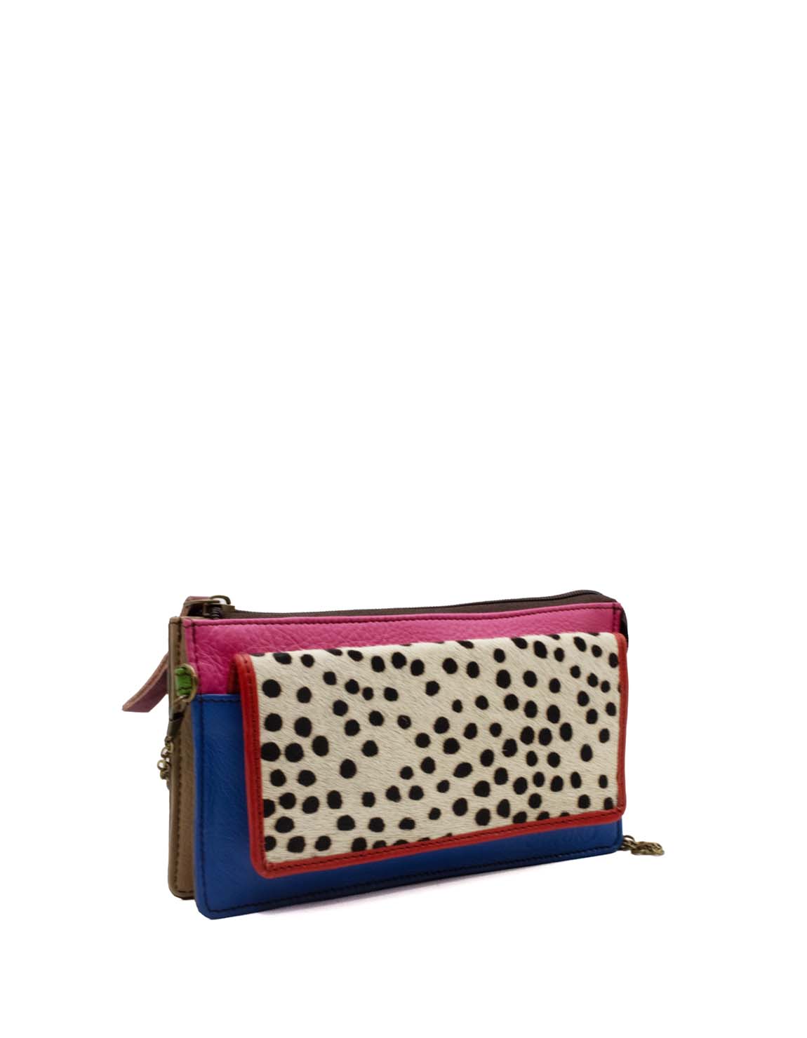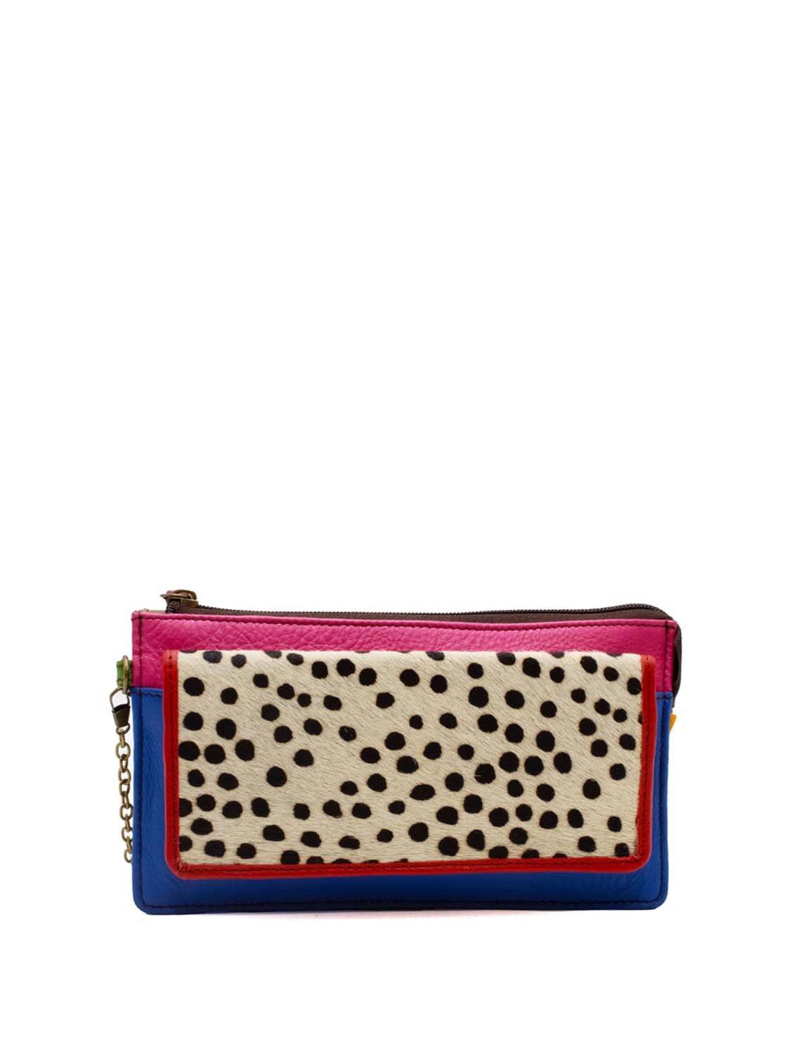 Recycled Leather Clutch with animal print and Shades of Blue. Beautiful Handcrafted Eco-Friendly Wallet made with Upcycled Leather.