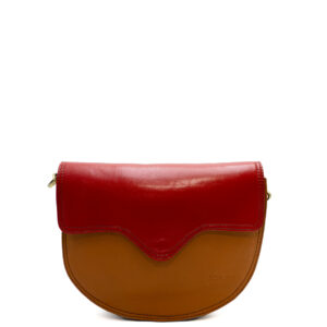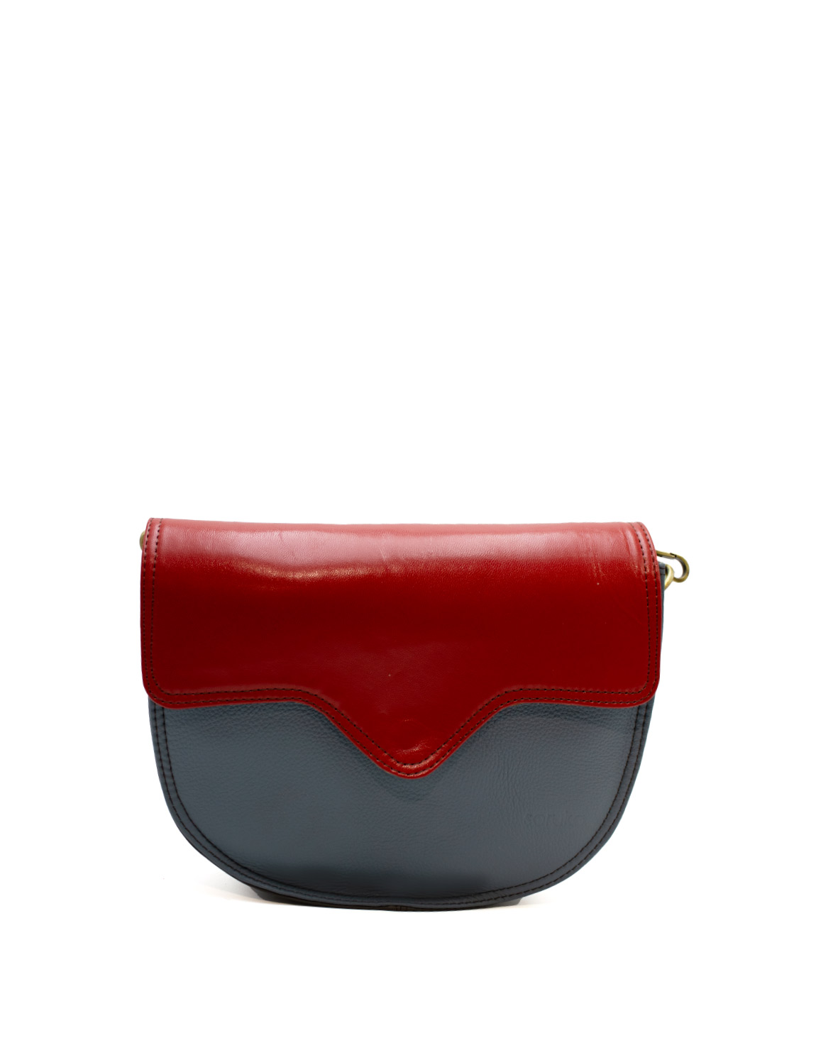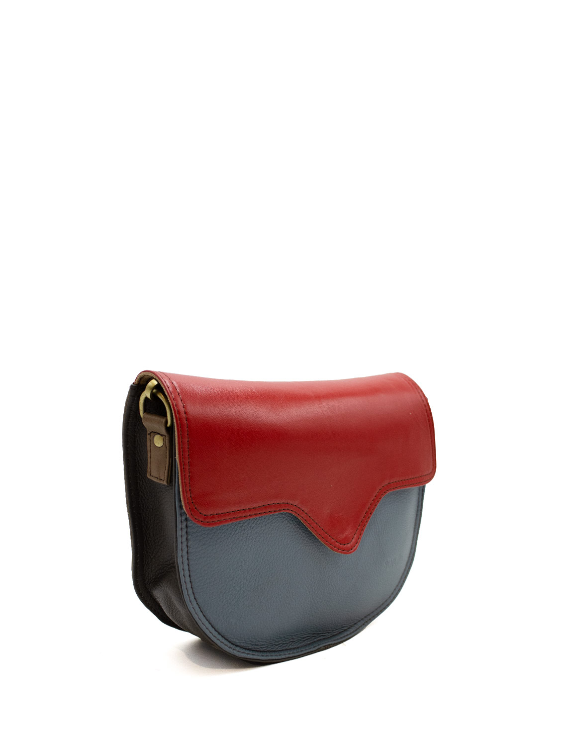 Beautiful 100% Recycled Leather Crossbody Bag in shades of Red and Blue. Eco-friendly Handmade Bag. Adjustable shoulder strap also in leather.