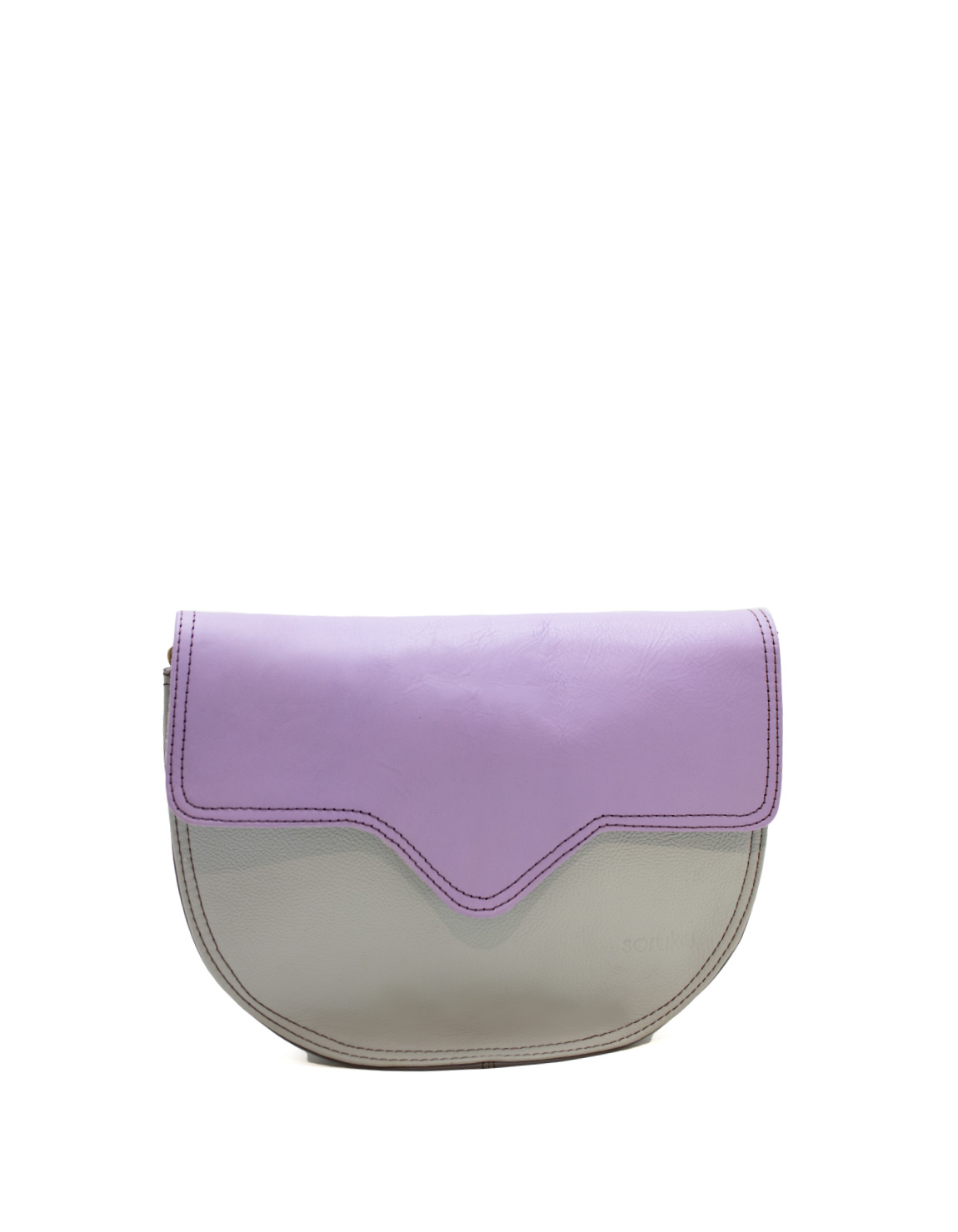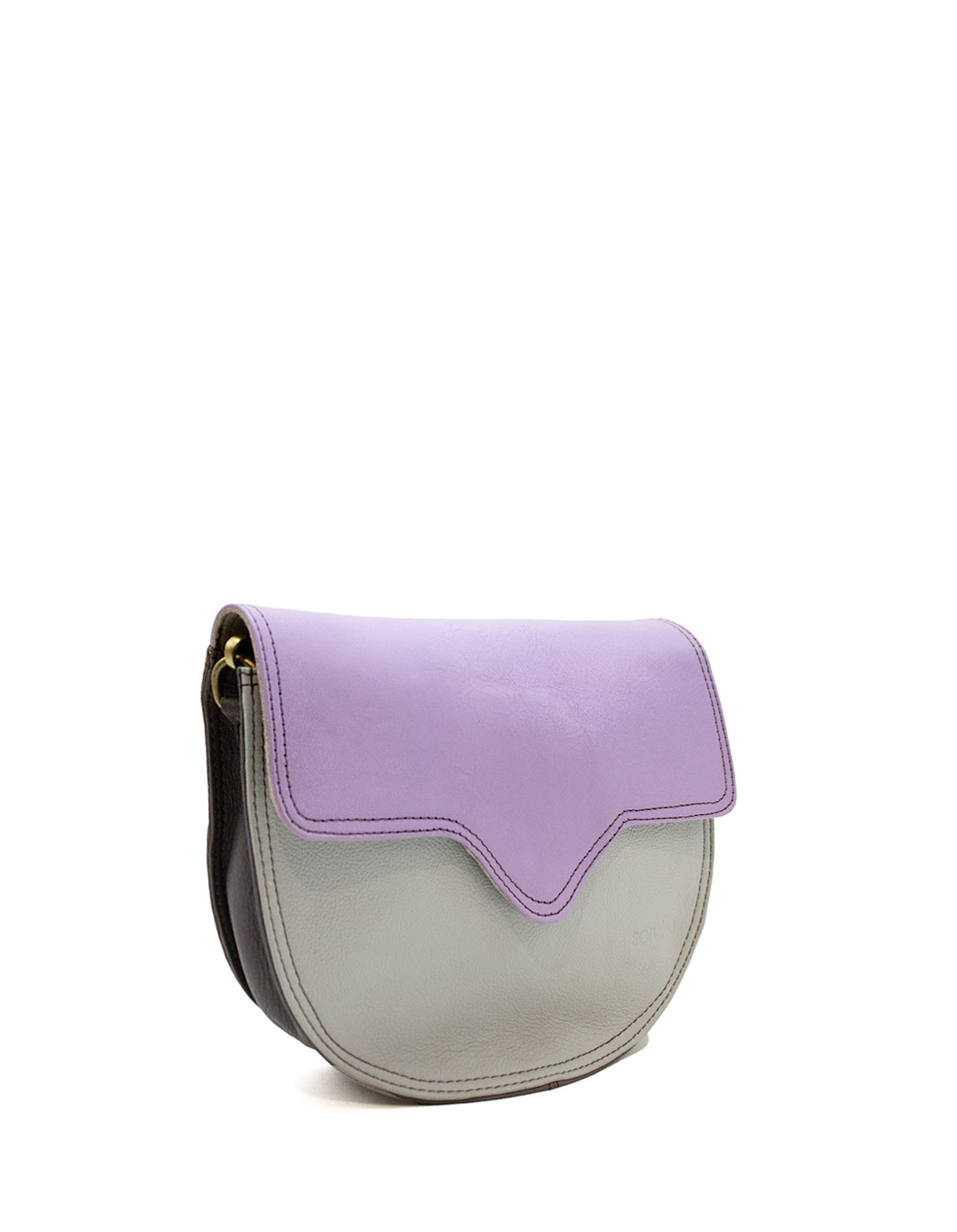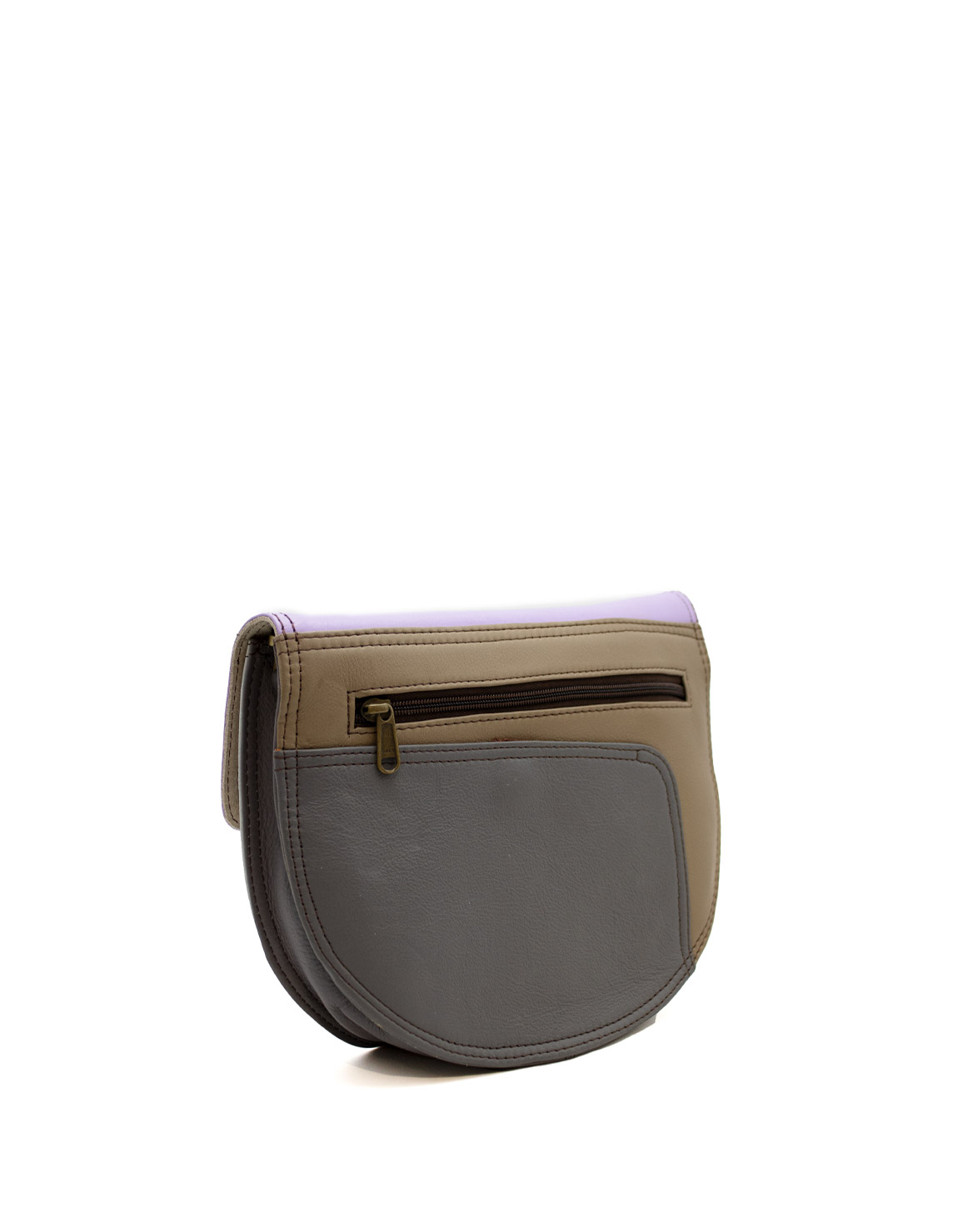 Beautiful 100% Recycled Leather Crossbody Bag in shades of Purple and Grey. Eco-friendly Handmade Bag. Adjustable shoulder strap also in leather.