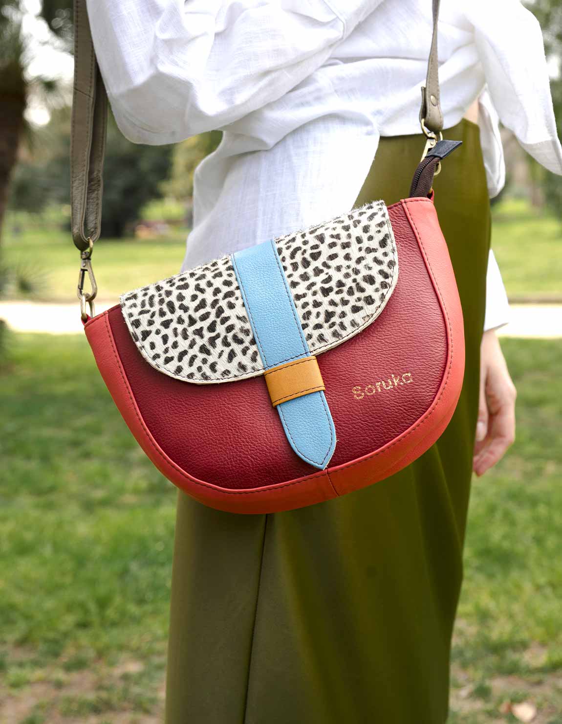 Colorful Leather Bag · Medium Crossbody Bag · Recycled Leather Purse · Shoulder Strap Bag · Medium Saddle Bag · Handmade Purse · Woman’s Handbag · Upcycled Leather Bag