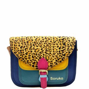Beautiful 100% Recycled Leather Shoulder Bag with Animal Print flap and in shades of Purple and Red. Eco-friendly Handmade Bag. Adjustable shoulder strap also in leather.