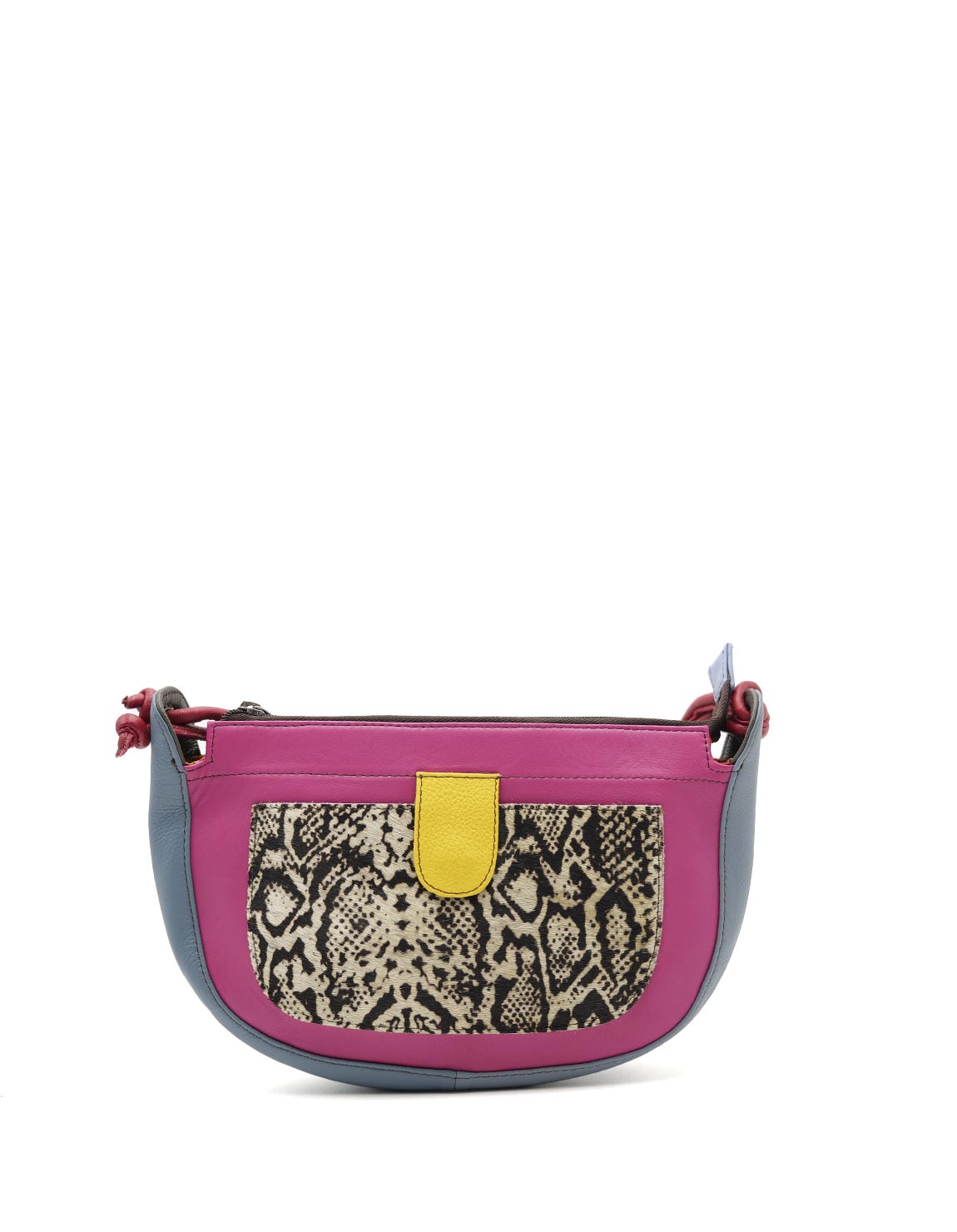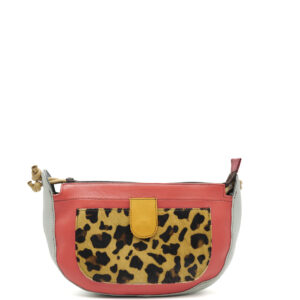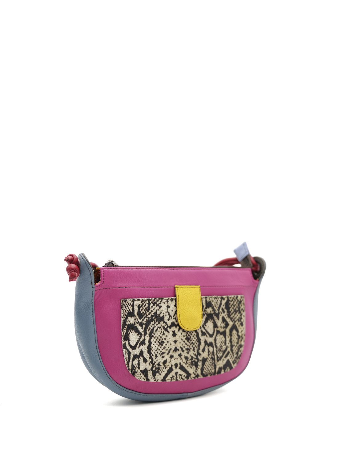 Beautiful 100% Recycled Leather Shoulder Bag. Eco-friendly Handmade Bag in shades of Purple and with animal print in the front pocket.