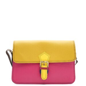 This colorful envelope-style crossbody bag is unique and goes with all kinds of looks. A perfect medium-sized crossbody bag for carrying all your essentials! It includes an adjustable leather strap so you can wear it over your shoulder or across your body. It has three internal compartments, one with a zipper, and an additional zippered pocket inside the main compartment. It closes with a magnetic snap under the buckle.