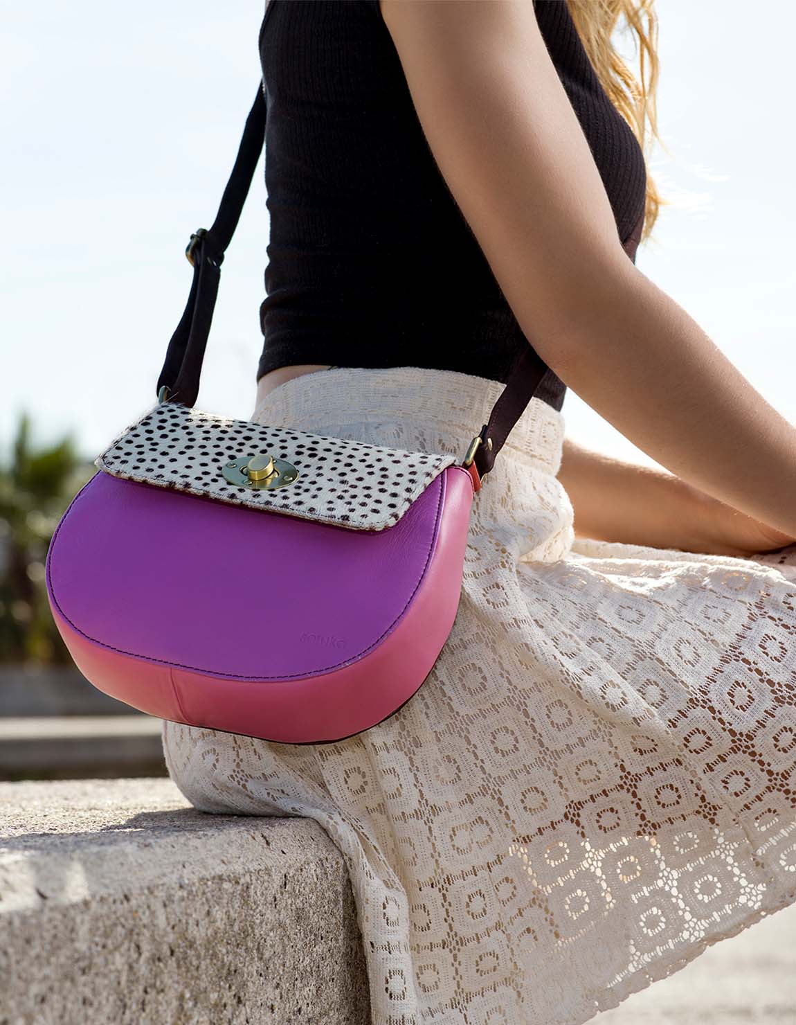 Recycled Leather Purse · Small Round-shape Bag · Colourful Leather Bag · Handmade Woman Bag Gift · Handmade Shoulder Strap Bag · Small Crossbody Bag