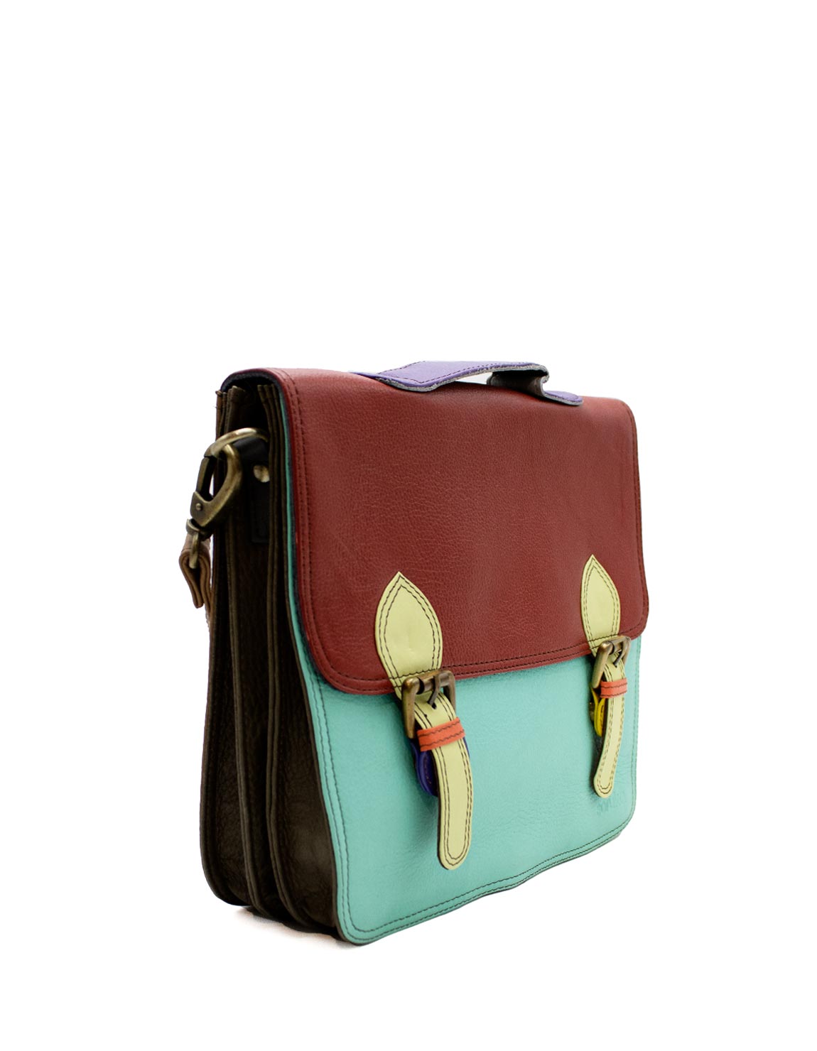This colorful satchel bag will make a statement when you wear it. Perfect size to carry all your essentials, including a tablet, notebook and also compact laptop.