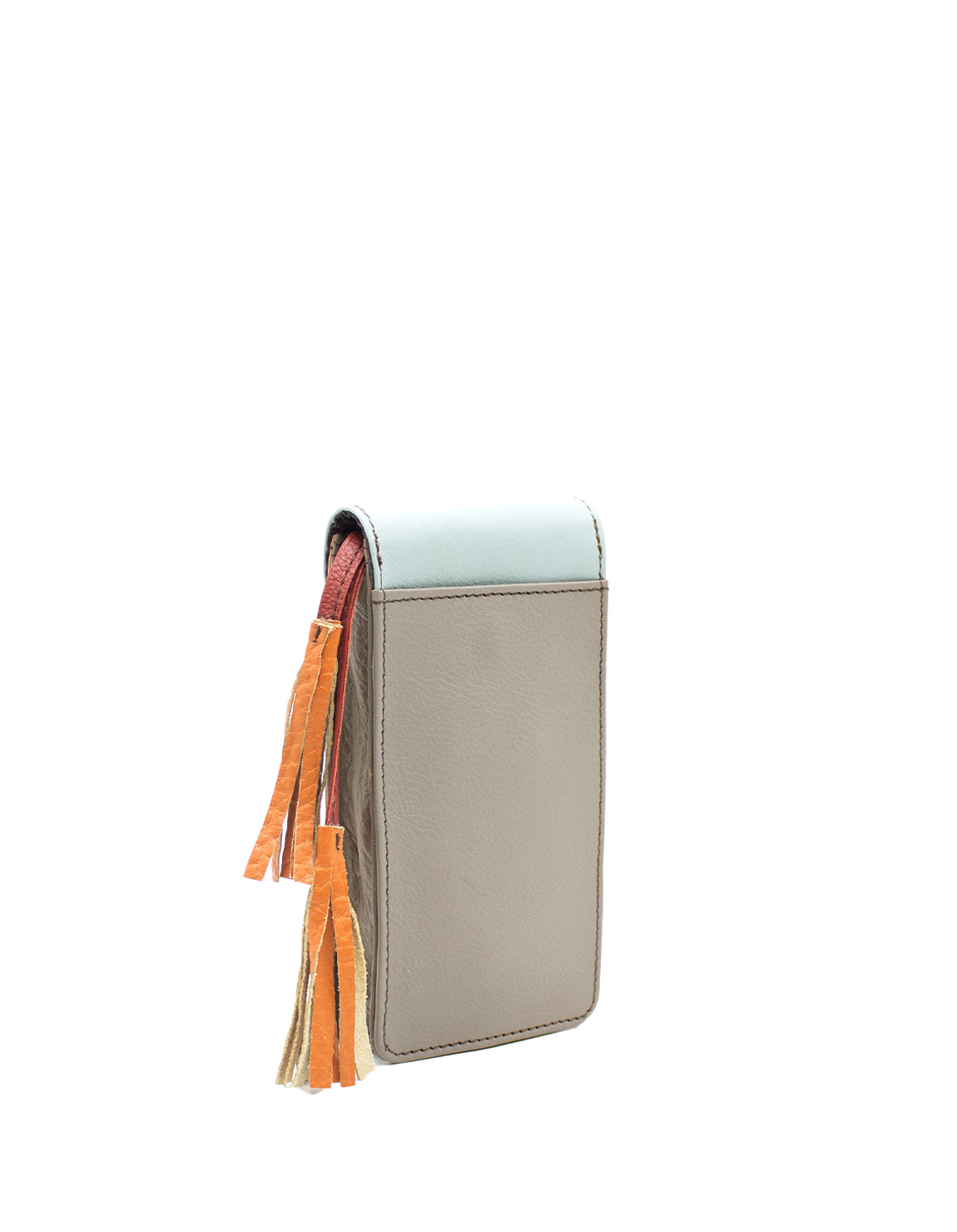 Recycled Leather Phone Bag in Shades of Light Blue and Light Orange. Beautiful Handcrafted Eco-Friendly Purse made with Upcycled Leather.