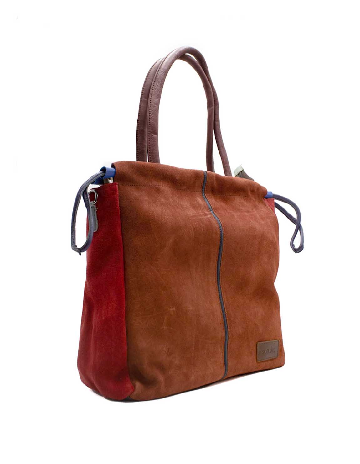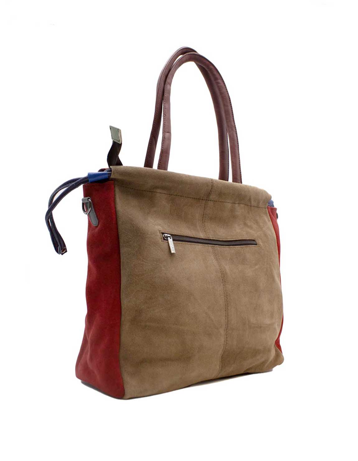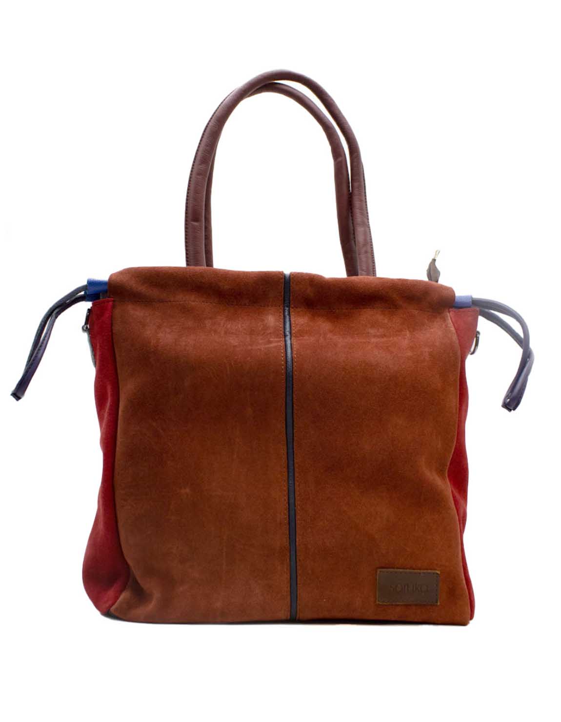 Women’s shoulder bag · Two-tone recycled leather · Handmade · Double handles and adjustable shoulder strap · Large capacity for everyday use