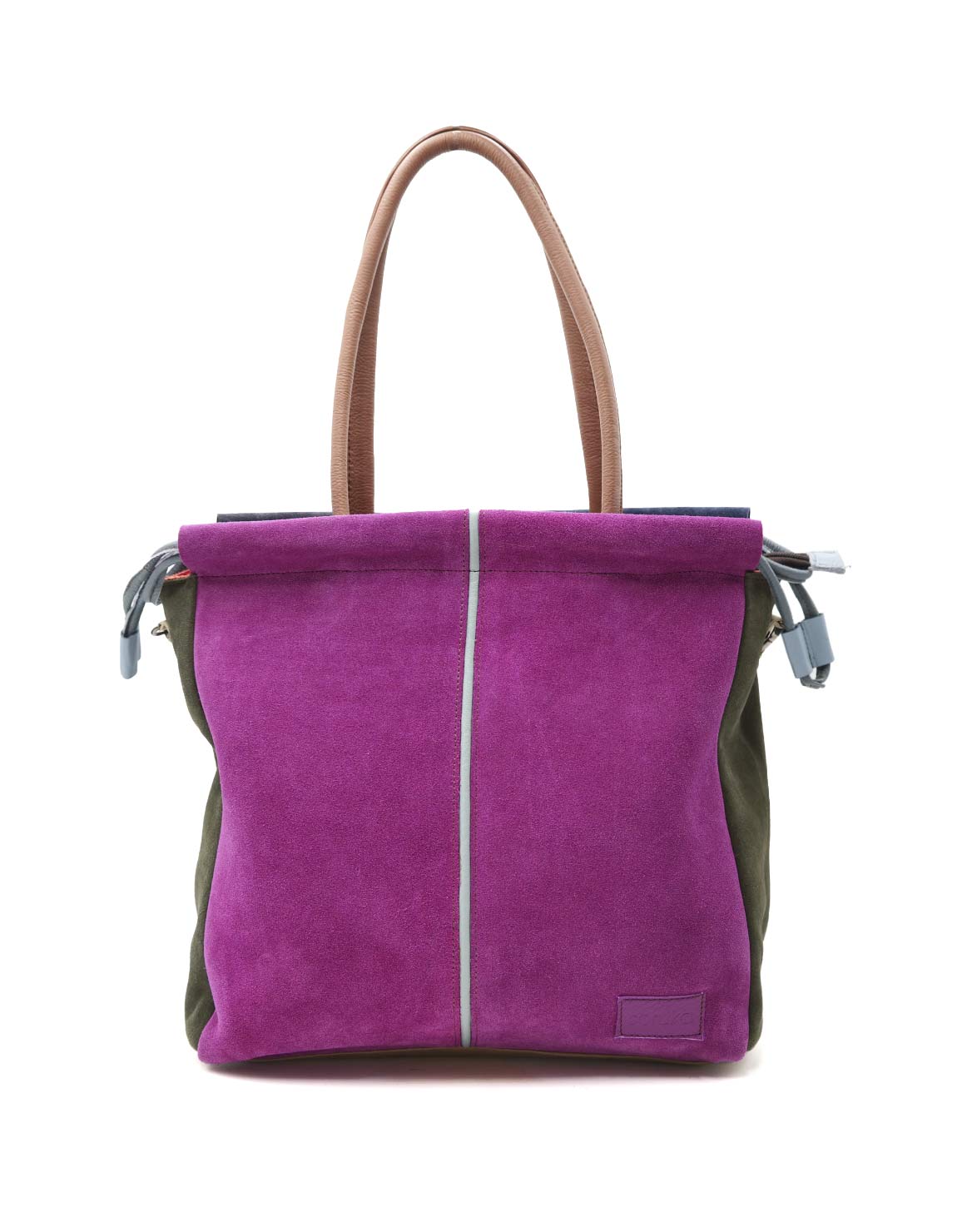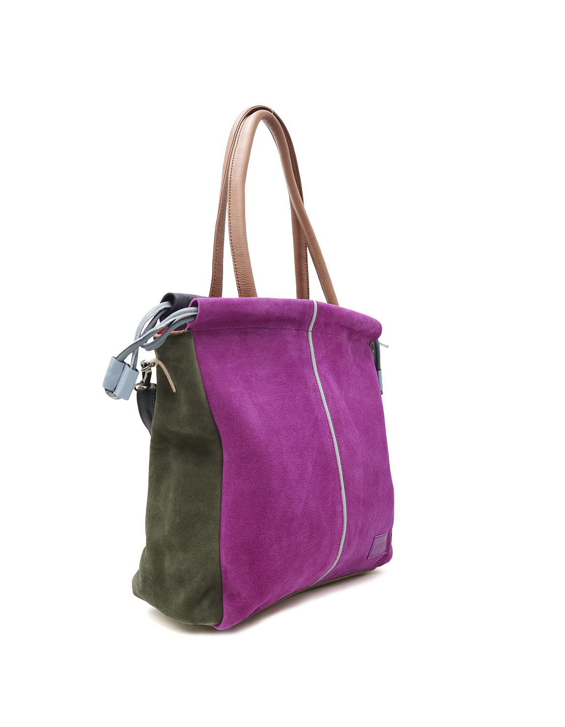 Women’s shoulder bag · Two-tone recycled leather · Handmade · Double handles and adjustable shoulder strap · Large capacity for everyday use