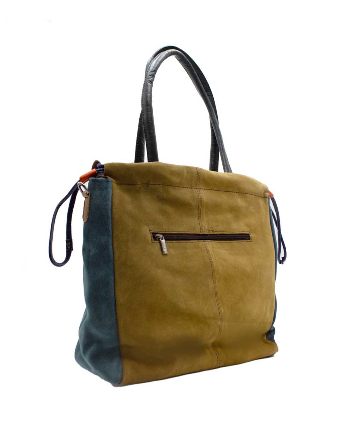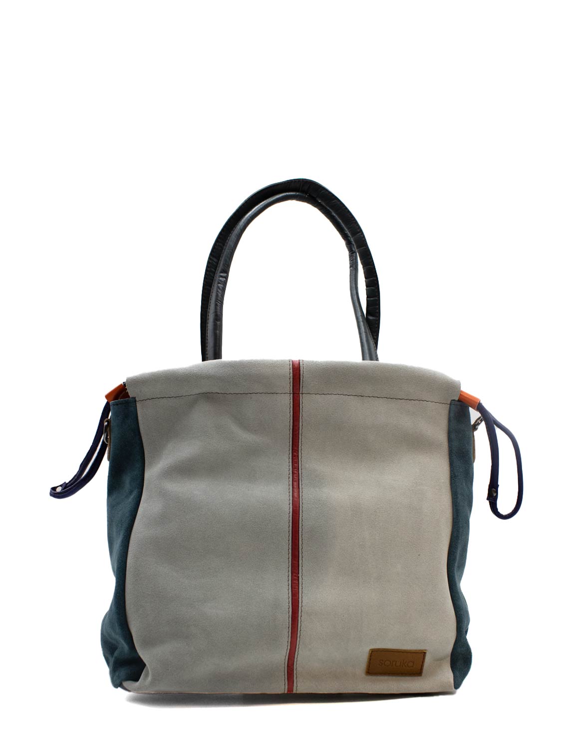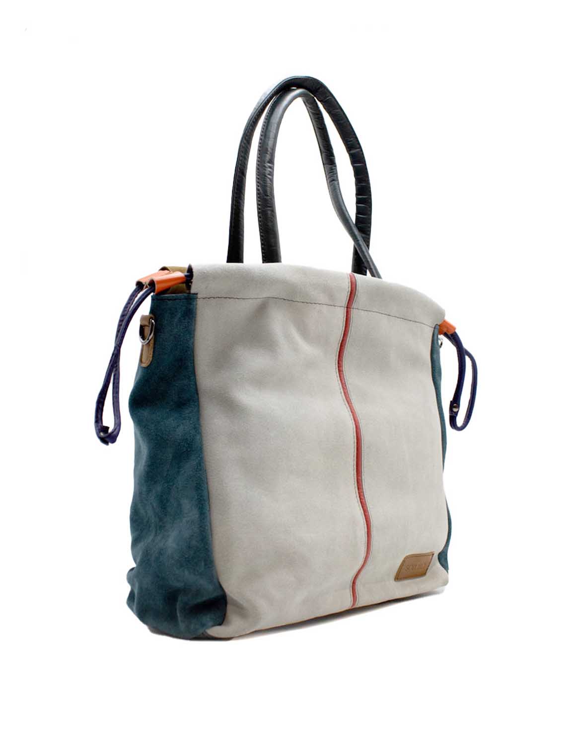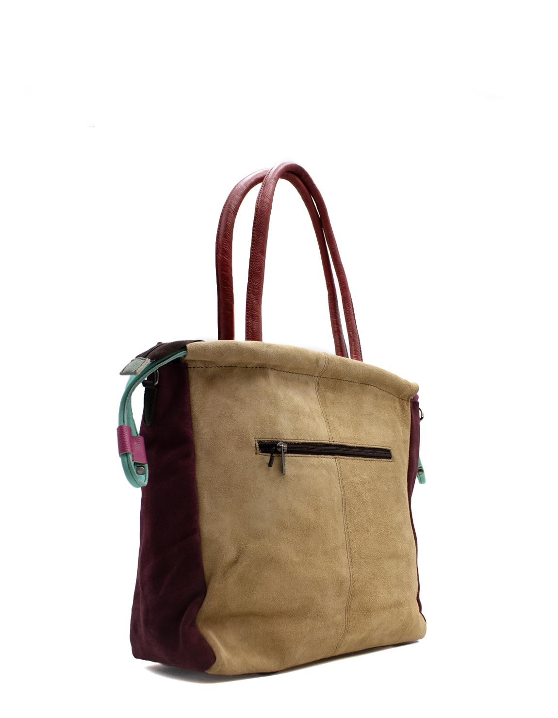 Women’s shoulder bag · Two-tone recycled leather · Handmade · Double handles and adjustable shoulder strap · Large capacity for everyday use