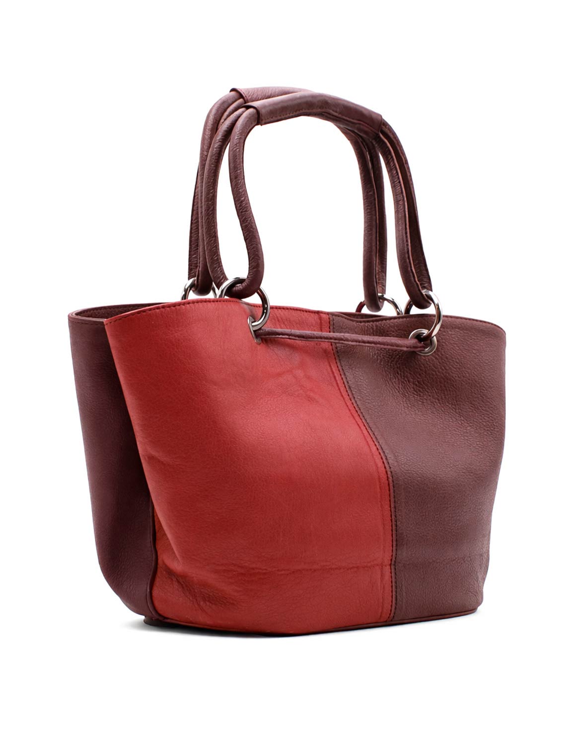 Handmade shoulder tote bag in 100% recycled leather, in Shades of Burgundy.