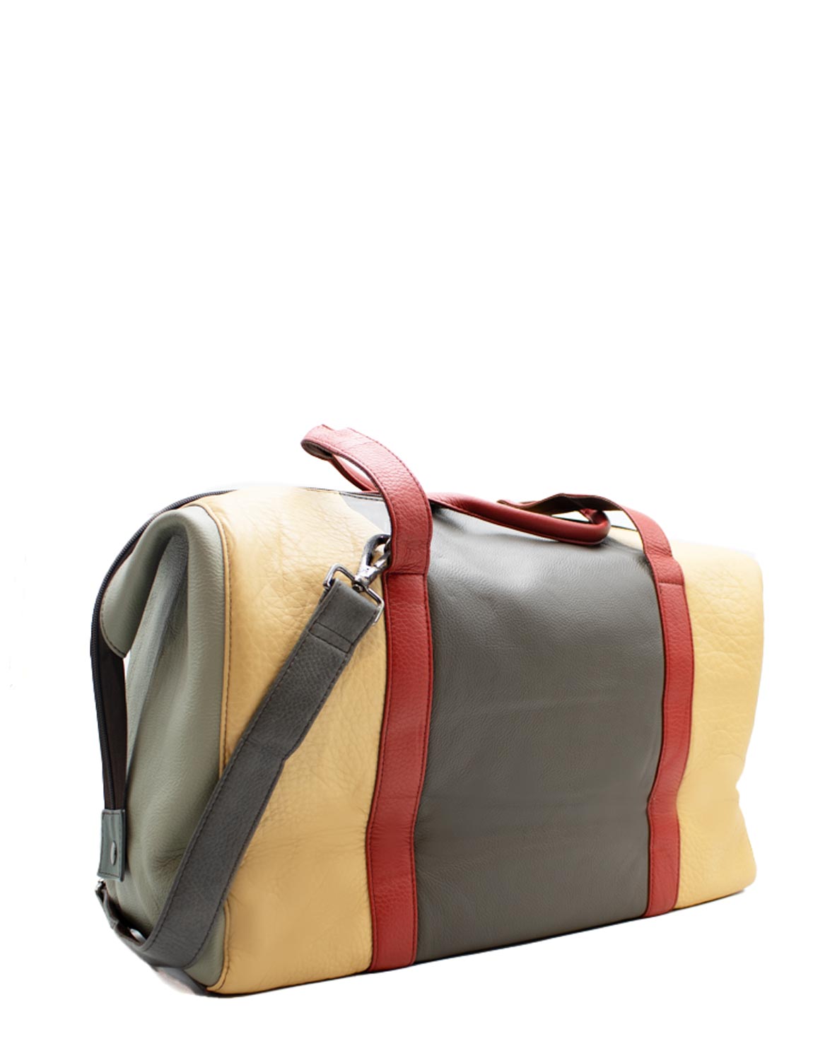 Recycled Leather Travel Bag · Zip Closure · Additional Strap · Ideal for Getaways