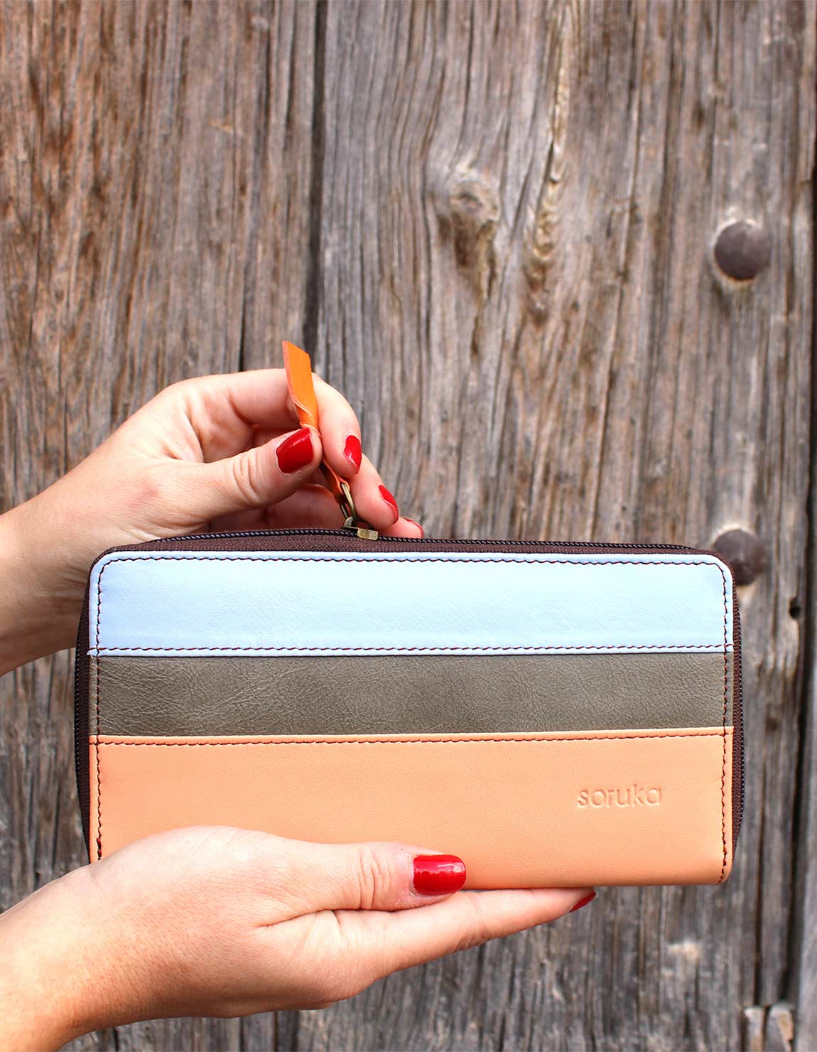 Leather Wallet · Handmade Women’s Recycled Leather Wallet · Soft Card Holder Wallet with Zipper Compartment · Gift for Her
